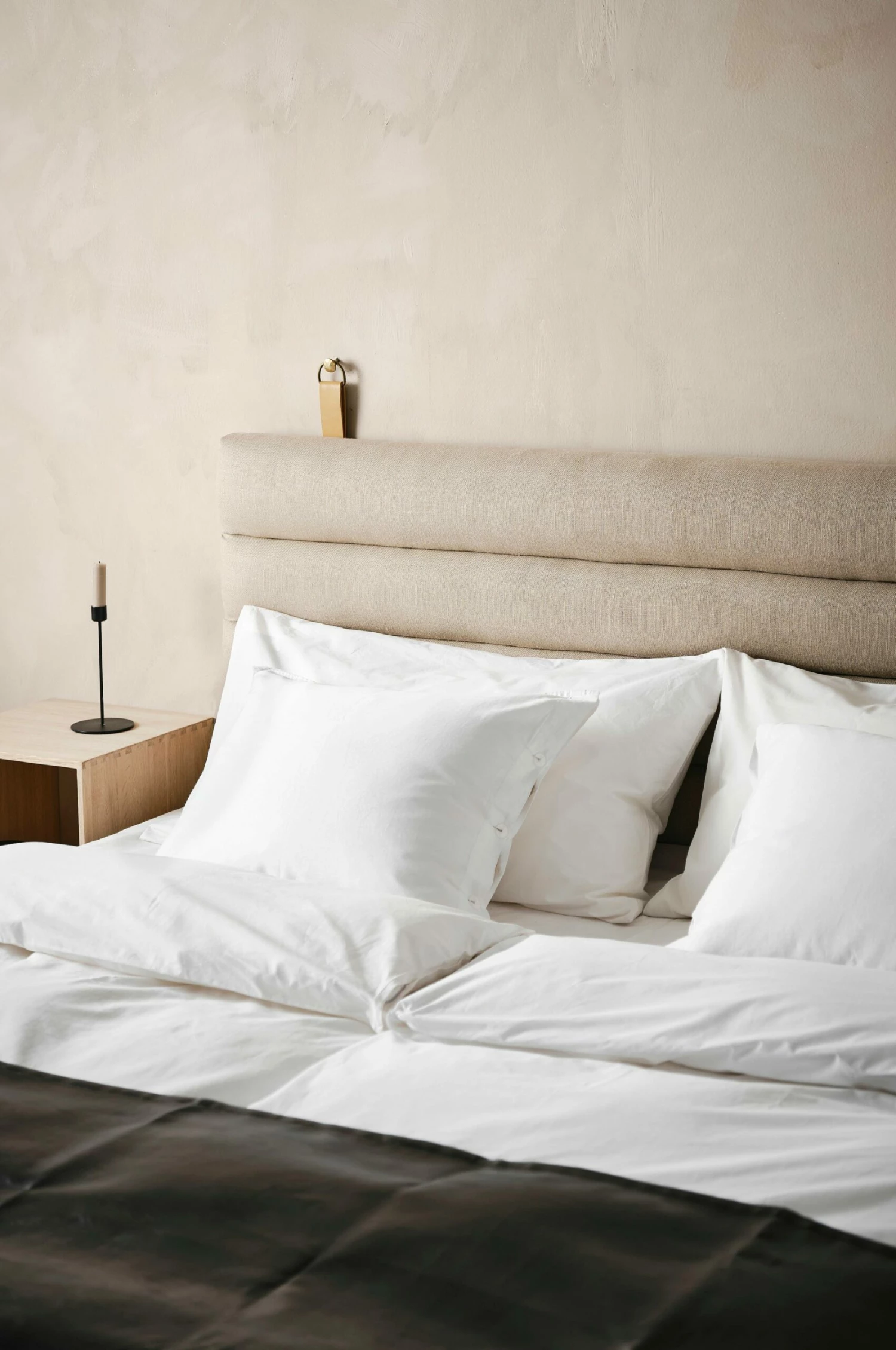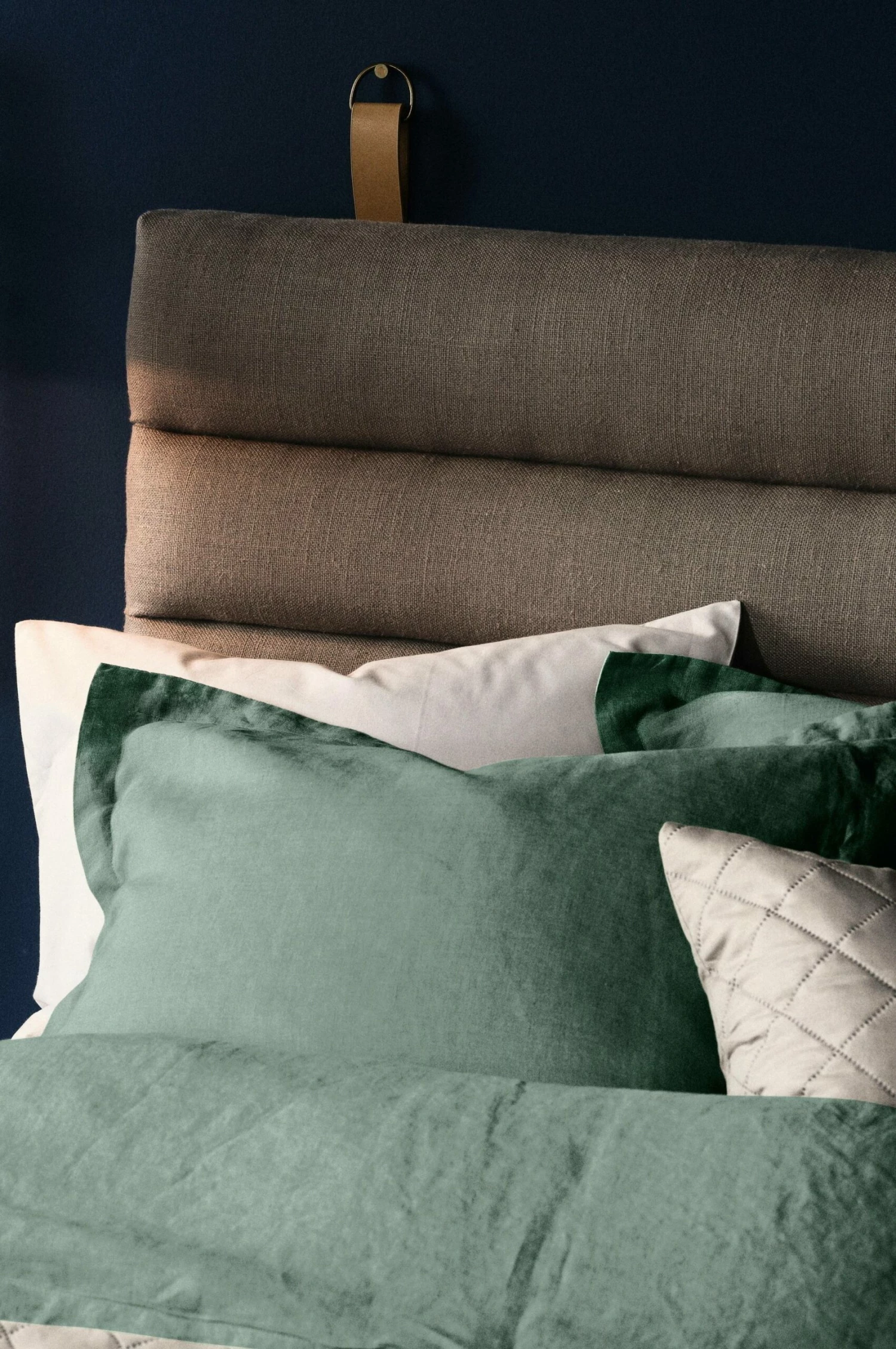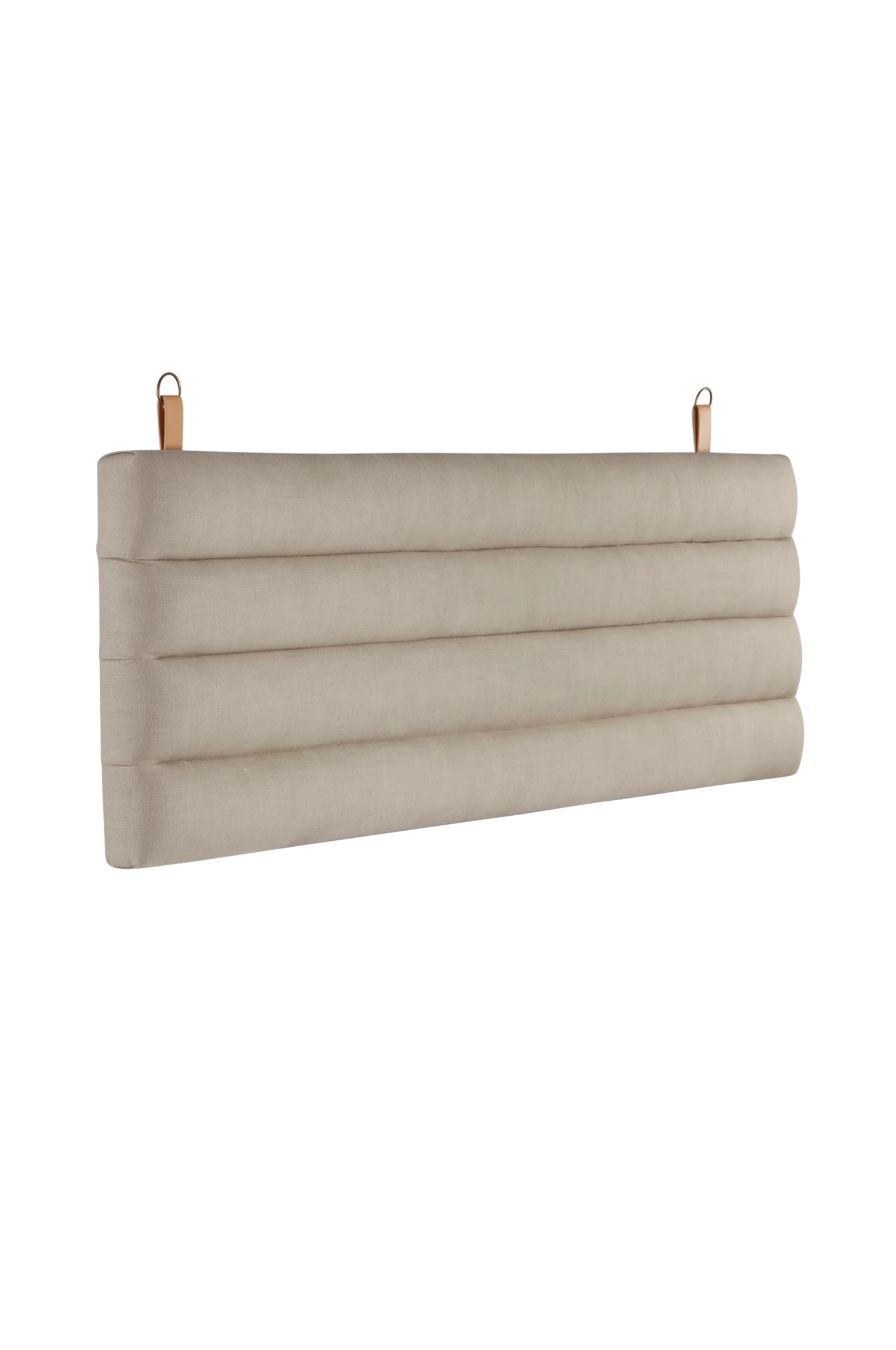Vägghängd sänggavel i luftigt linne med stomme av plywood och skumfyllning. AMSTERDAM är en stilren sängram i lugna naturfärger med dekorativa trädetaljer som snyggt ramar in din säng. Sänggaveln hängs på väggen bakom din resårmadrass med hjälp av ett medföljande väggfäste. Dekorativ spik ingår ej.
