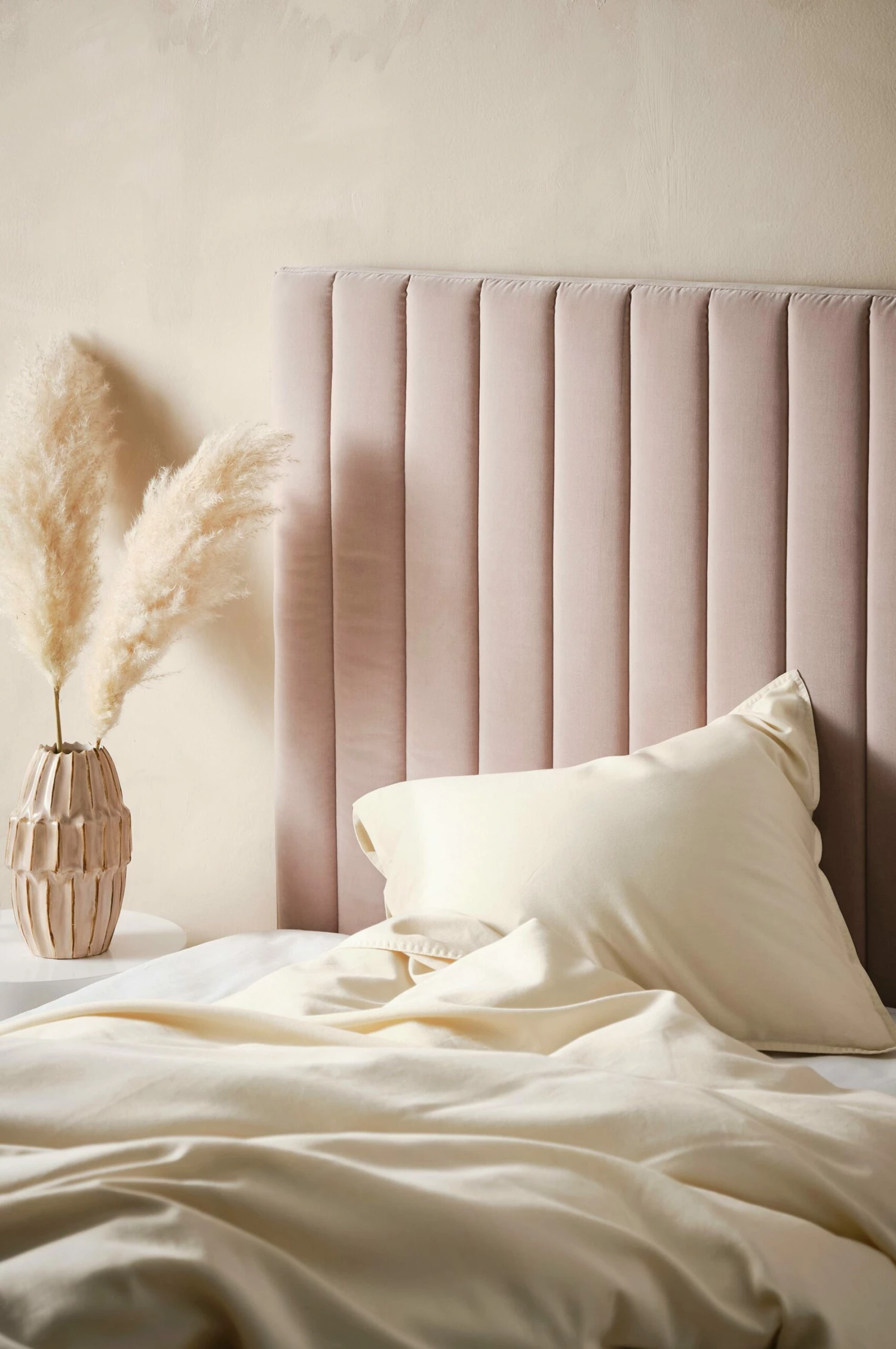 Förnya ditt sovrum och skapa en lyxig känsla med DERBY som är en fristående sänggavel i mjuk sammet med lodräta quiltsömmar. Väggfästen medföljer.
