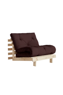 En tidlös möbel. Roots 90 är essensen i Karup Designs DNA: Du får inte bara en soffa utan också en säng och en bekväm loungestol. Genom att fälla in frambenen och justera ryggen får du en bekväm loungestol. Genom att sänka ryggen helt får du en fin säng där du kan ladda upp rotad till marken. Fäll upp ryggen, vik in madrassen, och nu har du en loungestol i vanlig höjd. Roots 90 förvandlas snabbt och enkelt – precis som magi. Trädetaljer av massiv furu. FSC-certifierad produkt, vilket innebär att den består av trä som är avverkat från ett ansvarsfullt skogsbruk som tar hänsyn till människor och miljö. Fyllning av återvunnet material.