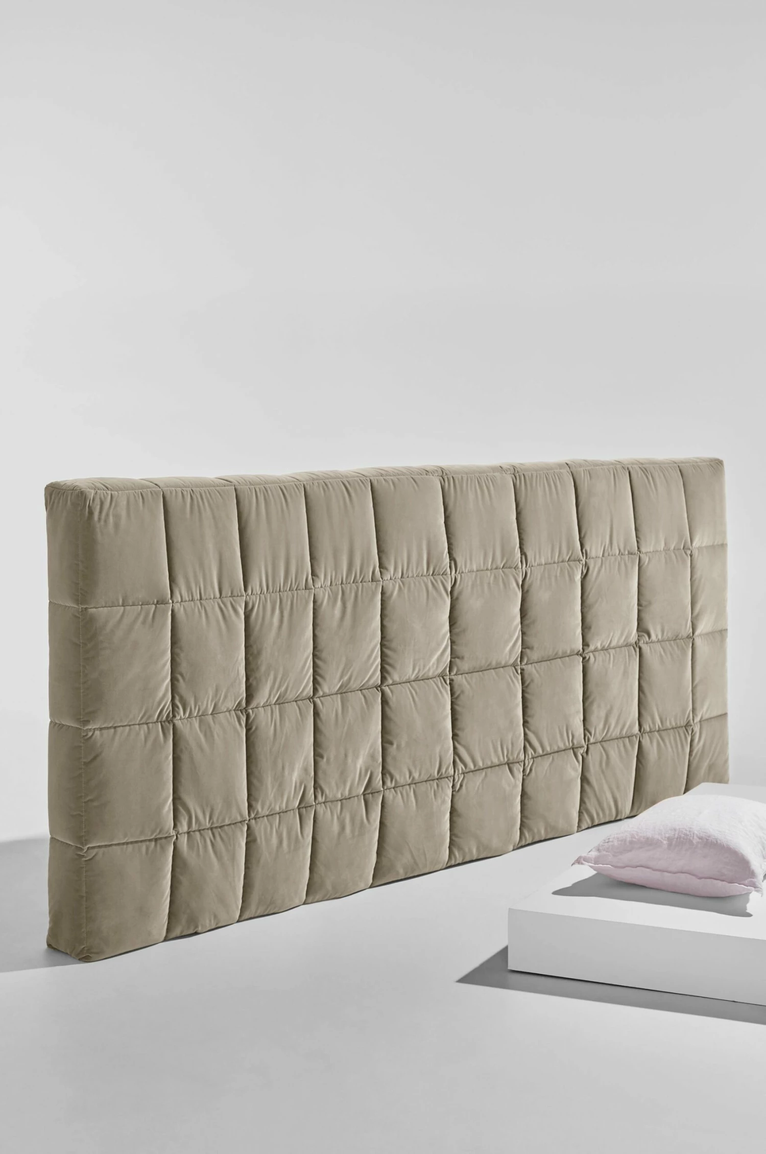 Ett överdrag i sammet som passar till Basil sänggavel. Sammetstyget är quiltat i stora rutor, 30×30 cm. Sammet är ett livfullt tyg där ljuset gör att tyget skiftar i olika nyanser. Tyget har ett terylenfoder som gör sänggaveln mjukare och den quiltade effekten förstärks. Detta överdrag passar en sänggavel som är 300 cm bred och ger en bred sammetsvägg bakom din säng. Basil mixar retro med det senaste och färgskalan är oslagbar.