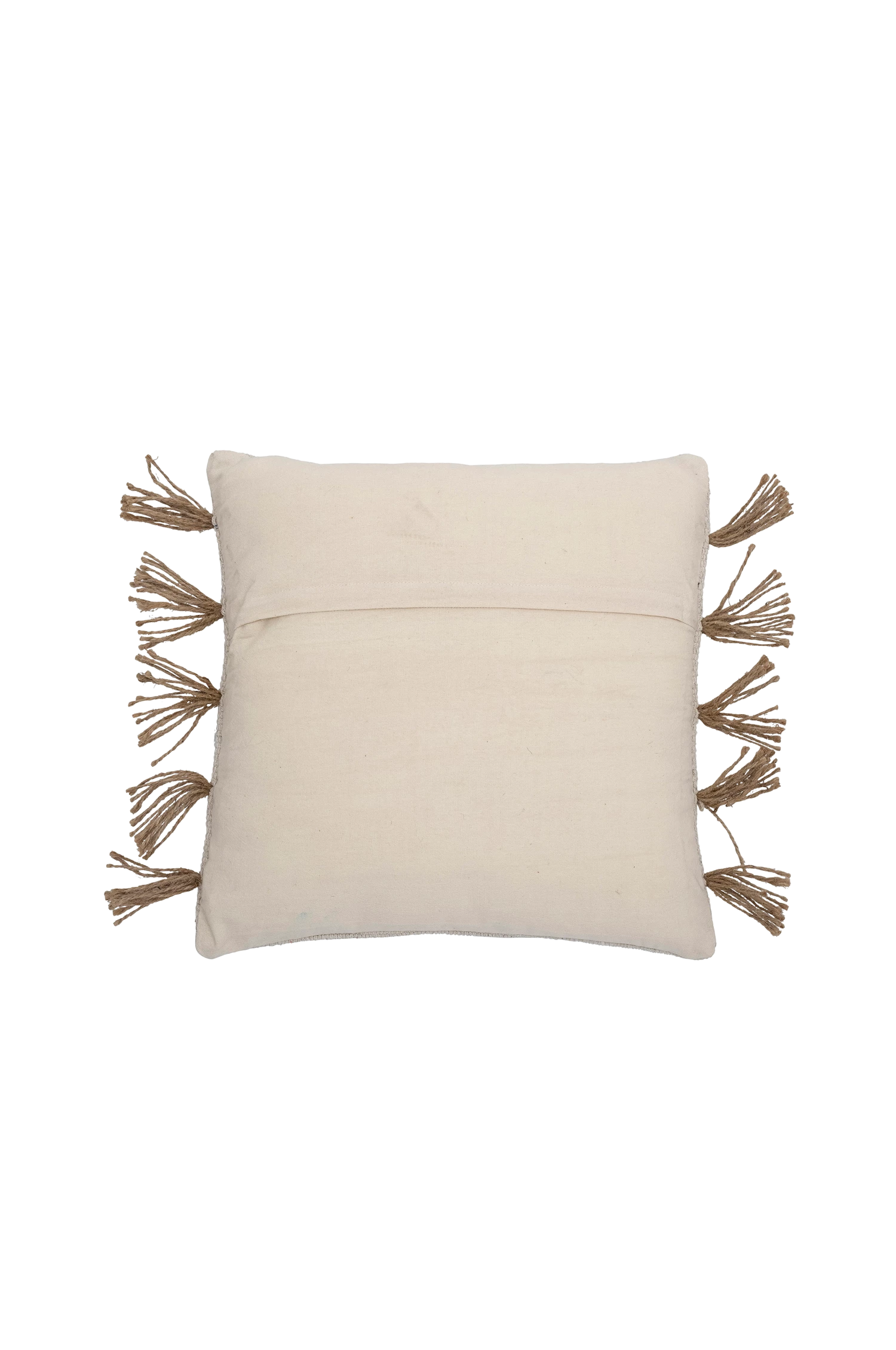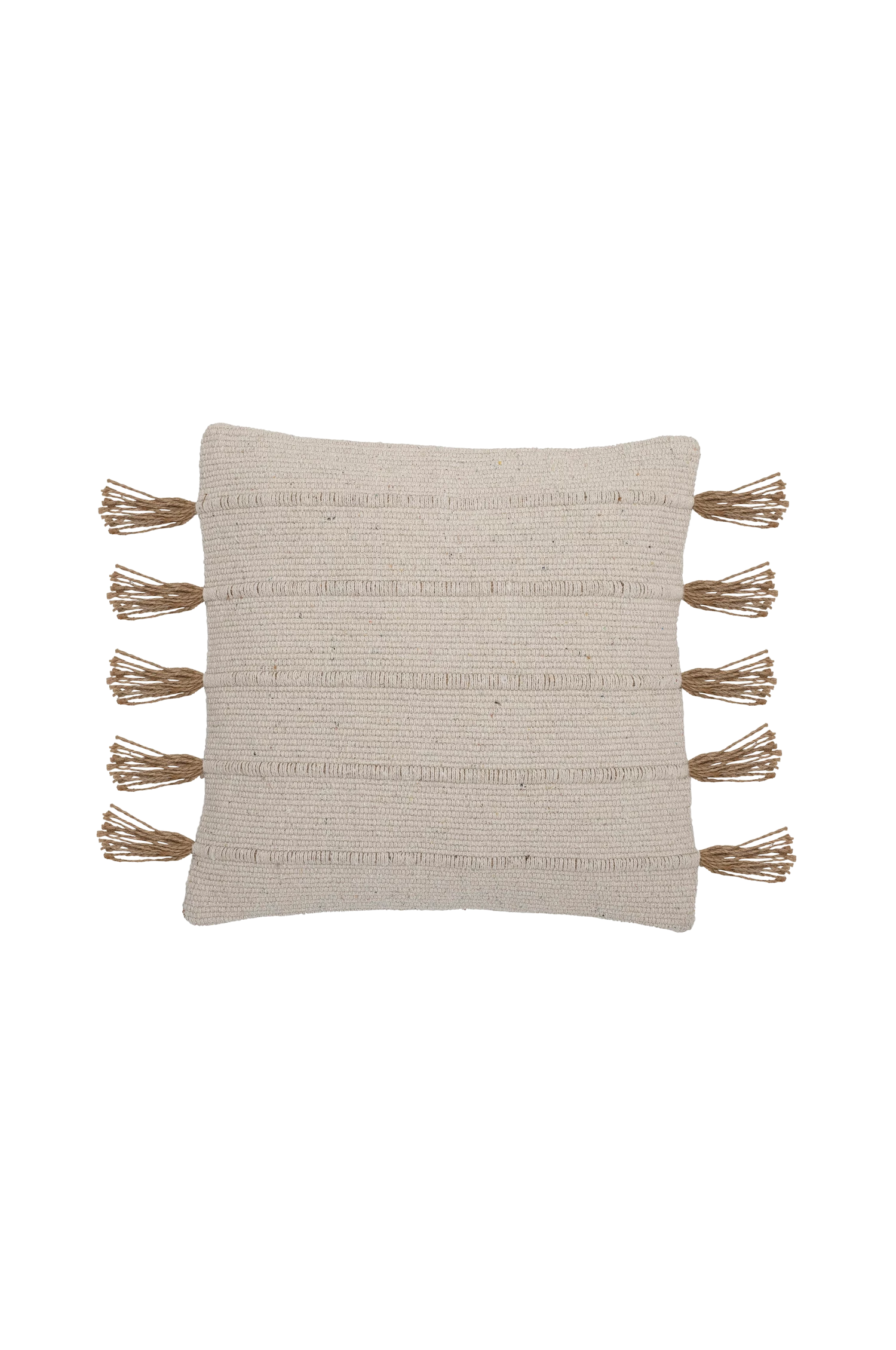 Ensar kudde Creative Collection är en vacker kudde av återvunnen bomull med mysiga tofsar av jute. Den naturliga stilen och naturfärgerna kompletteras av de grovvävda detaljerna. Kudden passar med alla textilier.