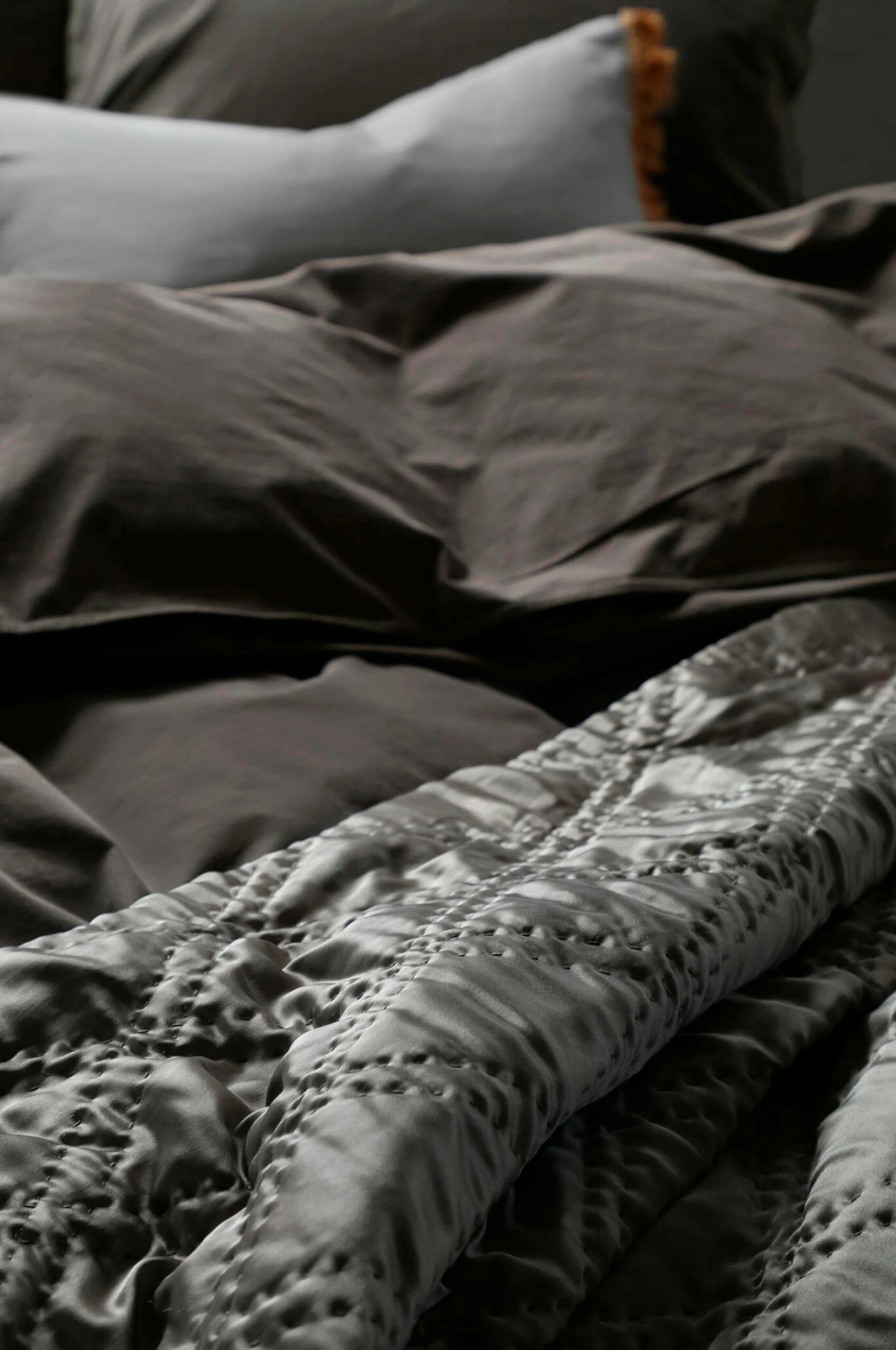Elegant överkast med handquiltning för den inredningsmedvetna. 100% polyester med silk look, handquiltet med polyester fyllning