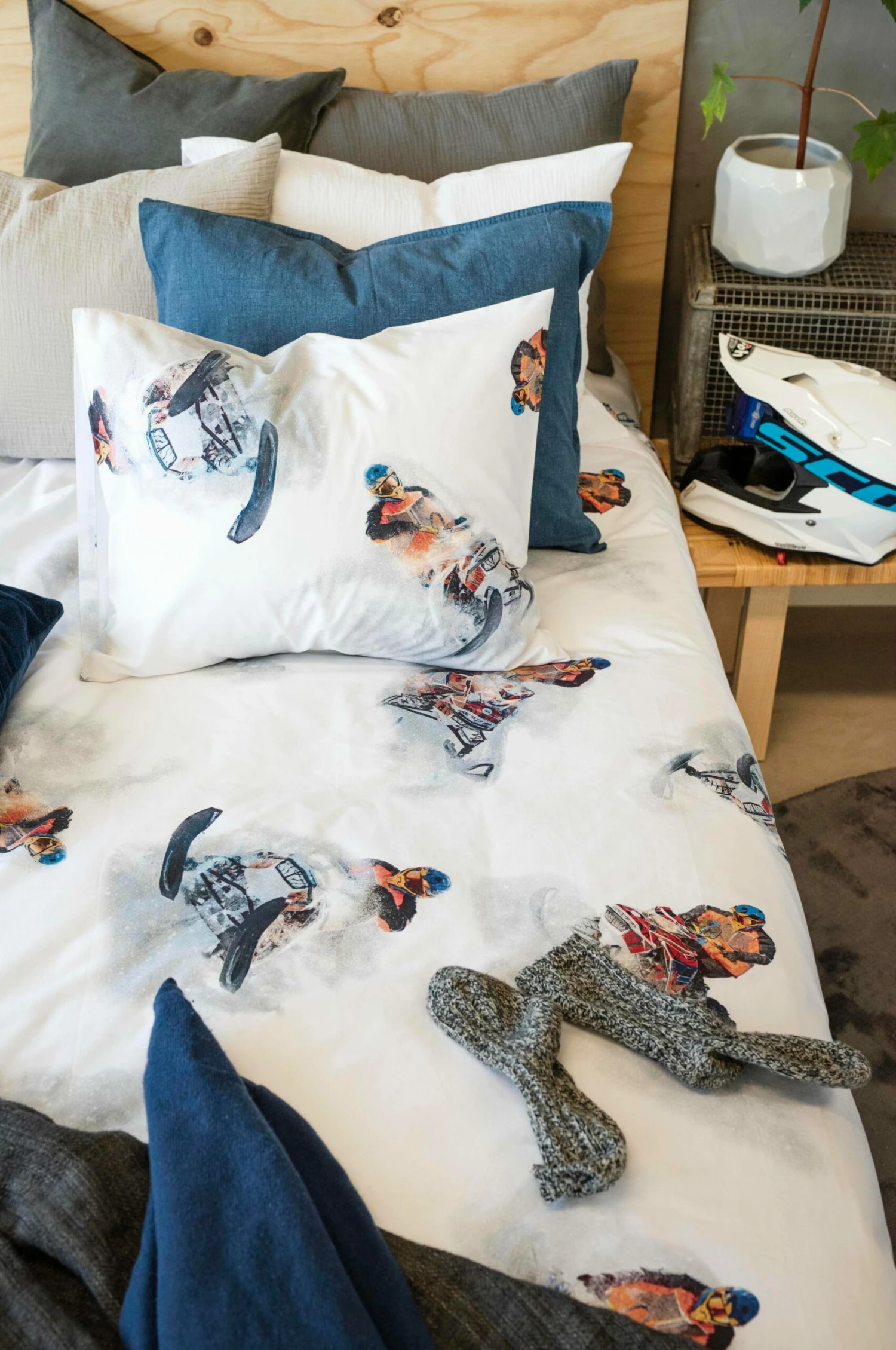 Bäddset bestående av ett örngott och ett påslakan. Bäddsetet har ett tryckt mönster och är tillverkat i mjuk och skön bomullskvalitet. Borganäs bäddset finns i flera olika mönster för både enkel- och dubbelsäng.OEKO-TEX. 100% Bomull