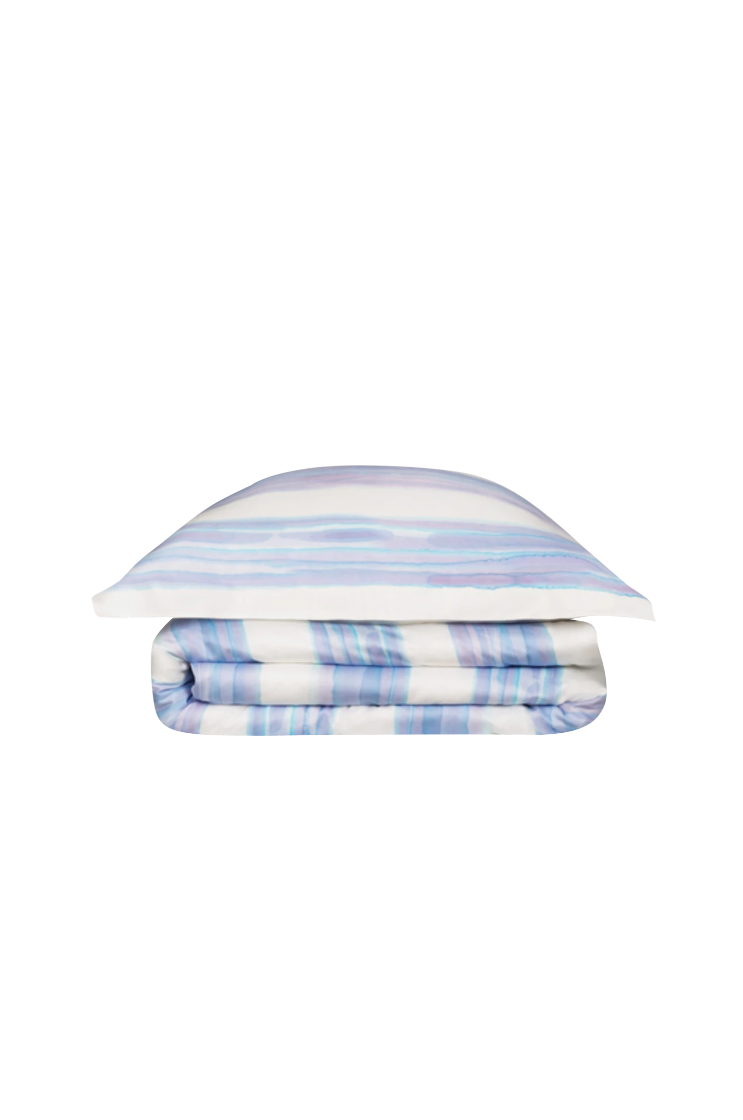 Bäddset kollektionen Batik med motiv av rinnande vatten, som garanterar en lugn och djup sömn och ger en exklusiv inredningsstil. Bomullssatinen med långa fibrer och trådtäthet 300 TC kommer hålla länge och är skön att sova på.