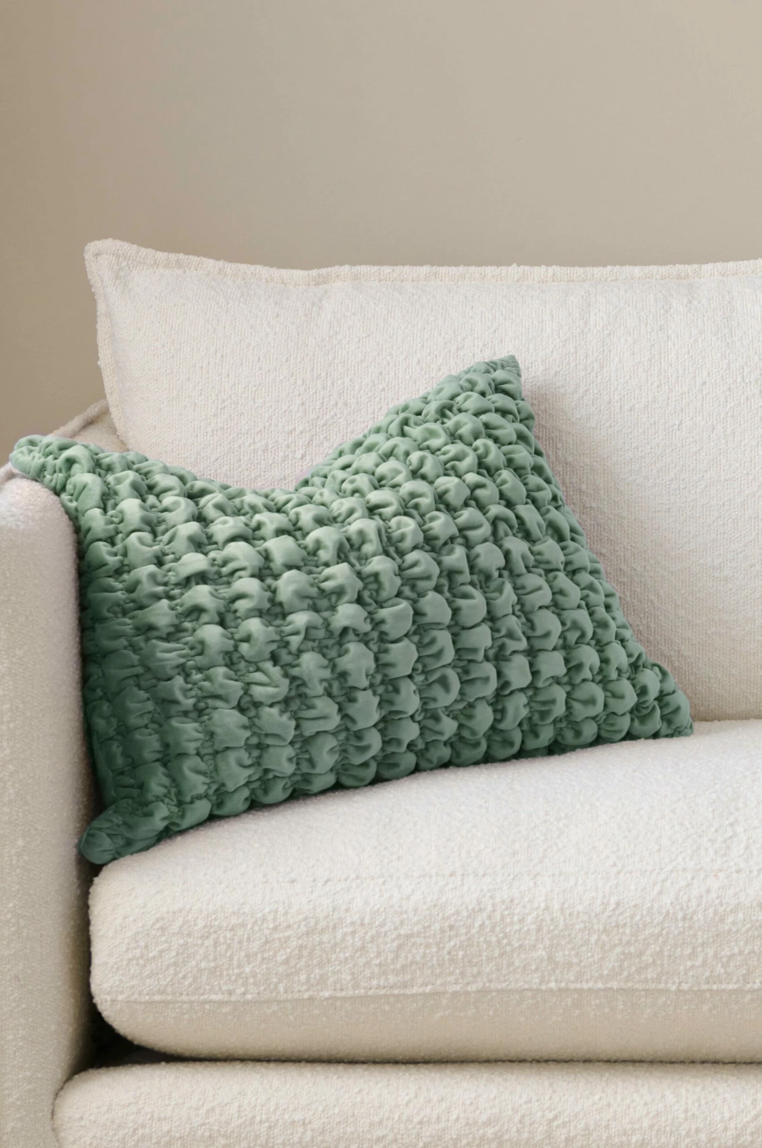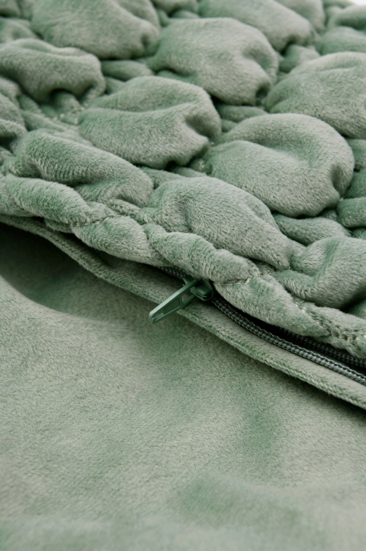 Kuddfodral av sammet med fin lyster och ett sytt, dekorativt mönster på framsidan. Slät baksida. Av återvunnen polyester. Dragkedja i botten.