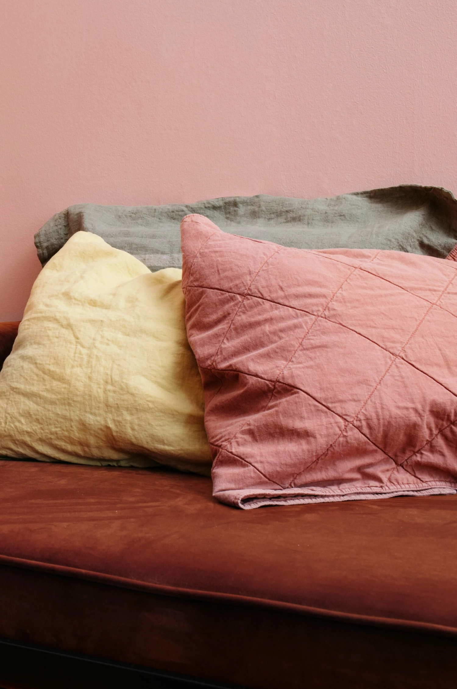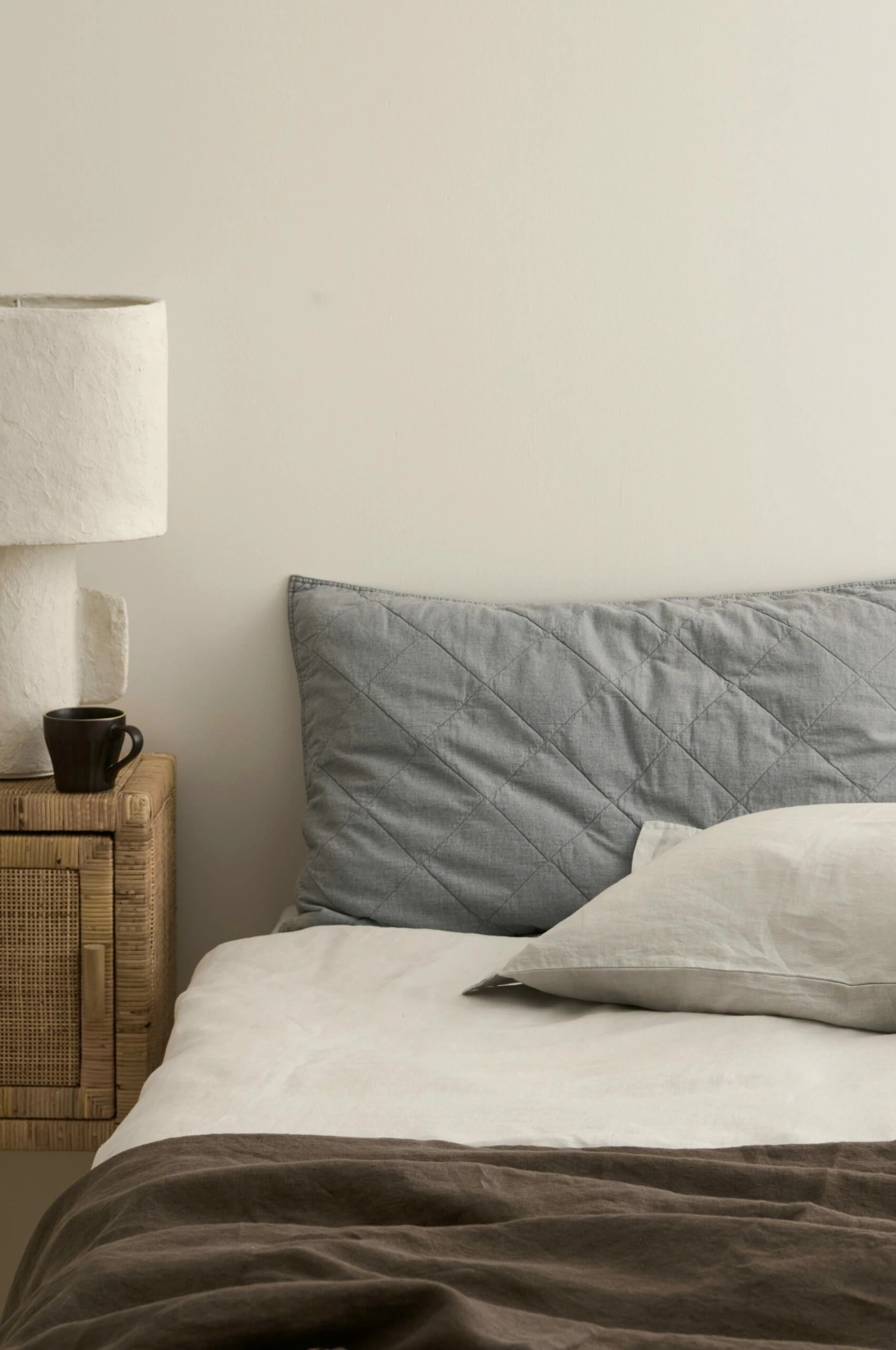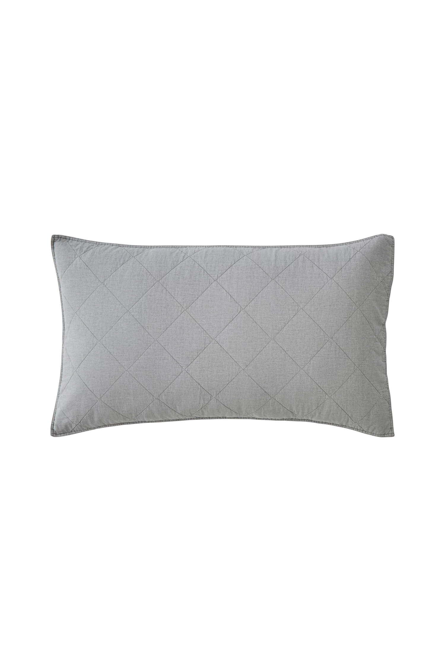 Quiltat kuddfodral i vintagetvättad ekologisk bomull. Storlek 50×90 cm.