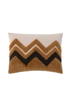 Kuddfodral med tuftat mönster i ull. Botten i lite grövre halvpanama av bomull. Metalldragkedja i nederkanten. Slät baksida.