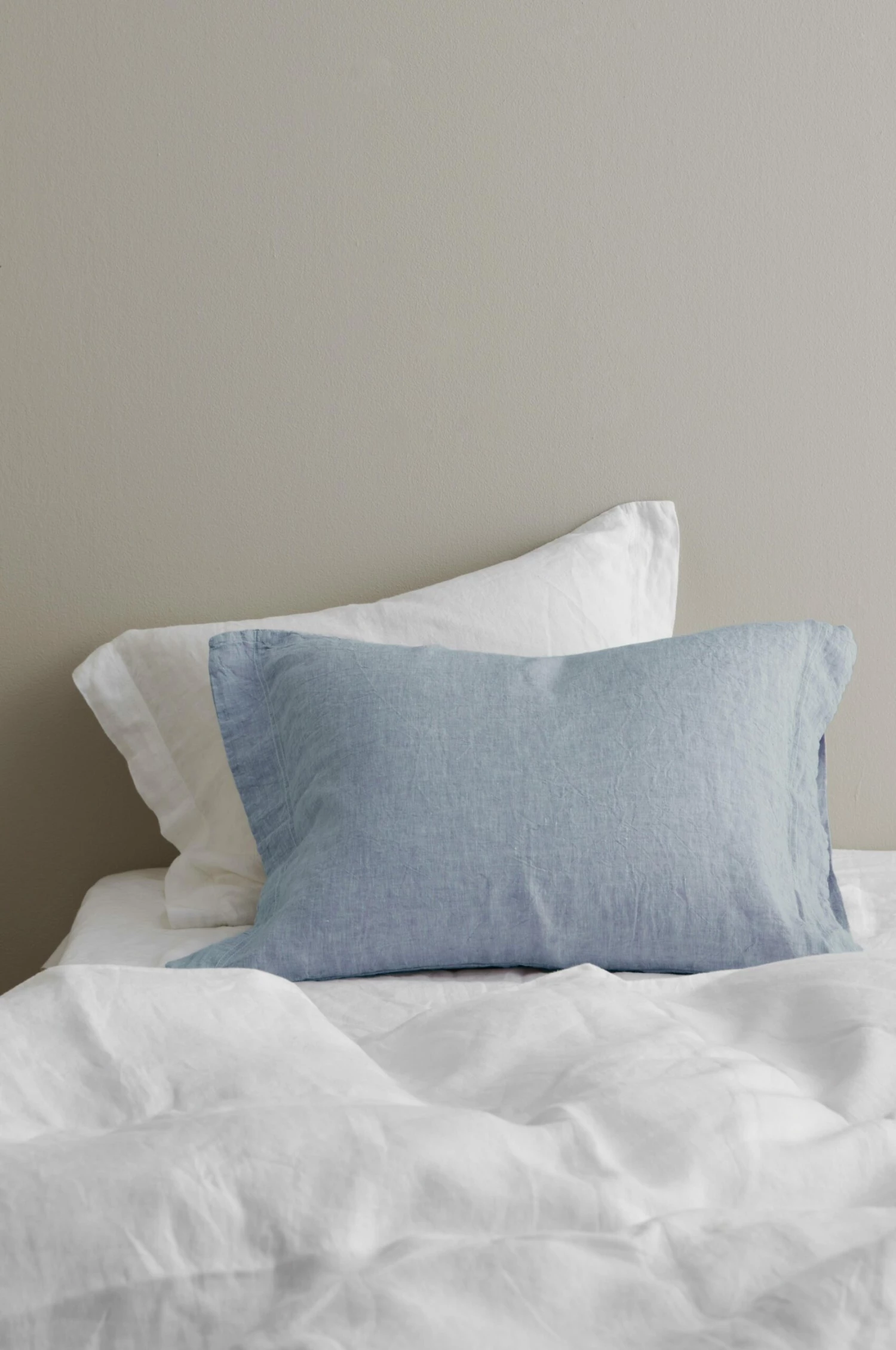 Örngott i vintagetvättad och garnfärgad chambray av lin med melangeeffekt. Vikt 165 g/m2.