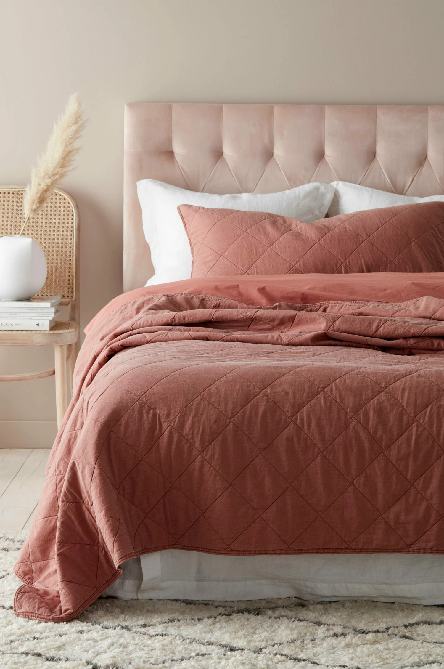 Quiltat överkast i vintagetvättad ekologisk bomull.