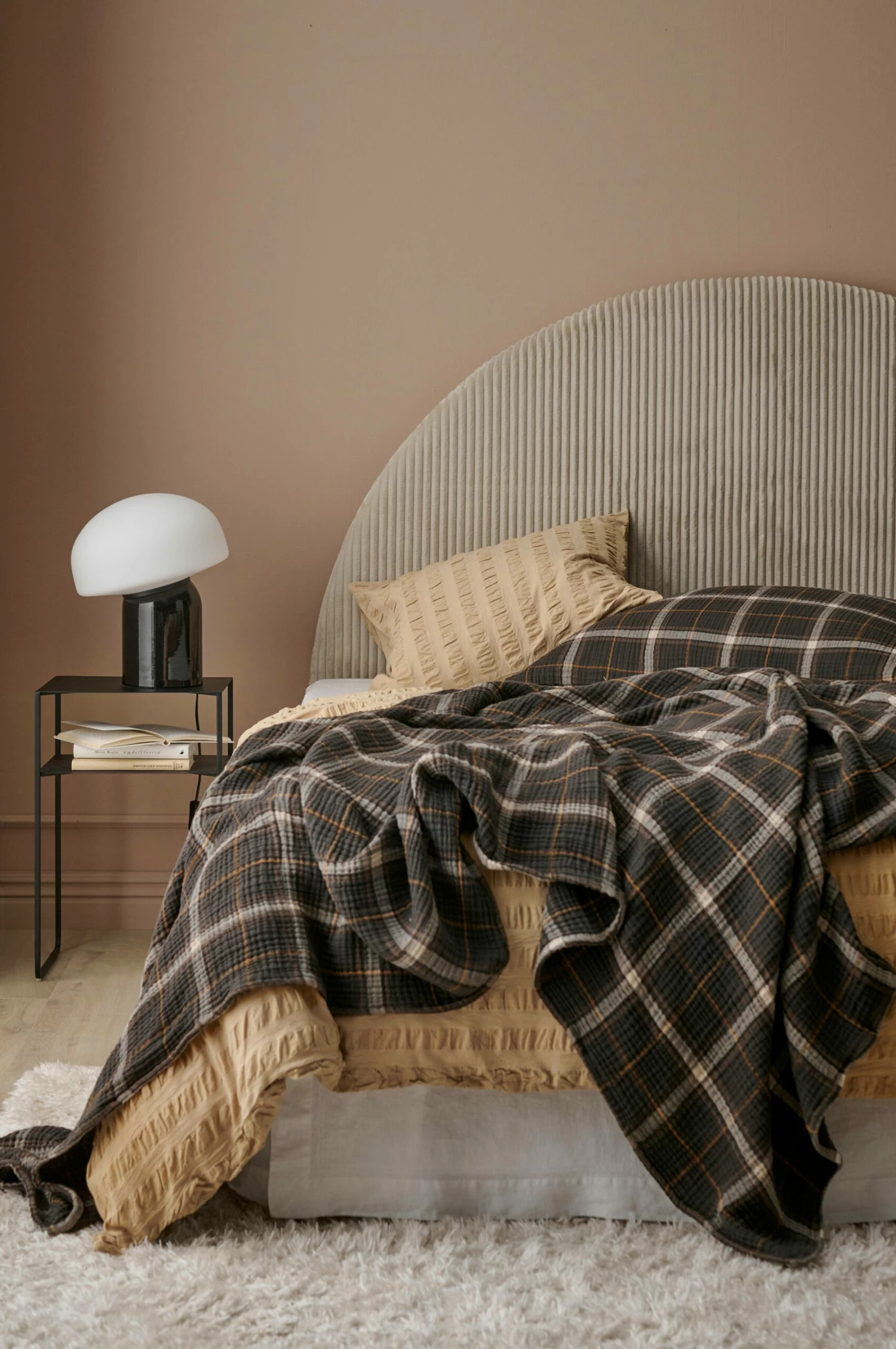 Överkast av ekologisk bomull i 4 lager med struktur. Garnfärgat.