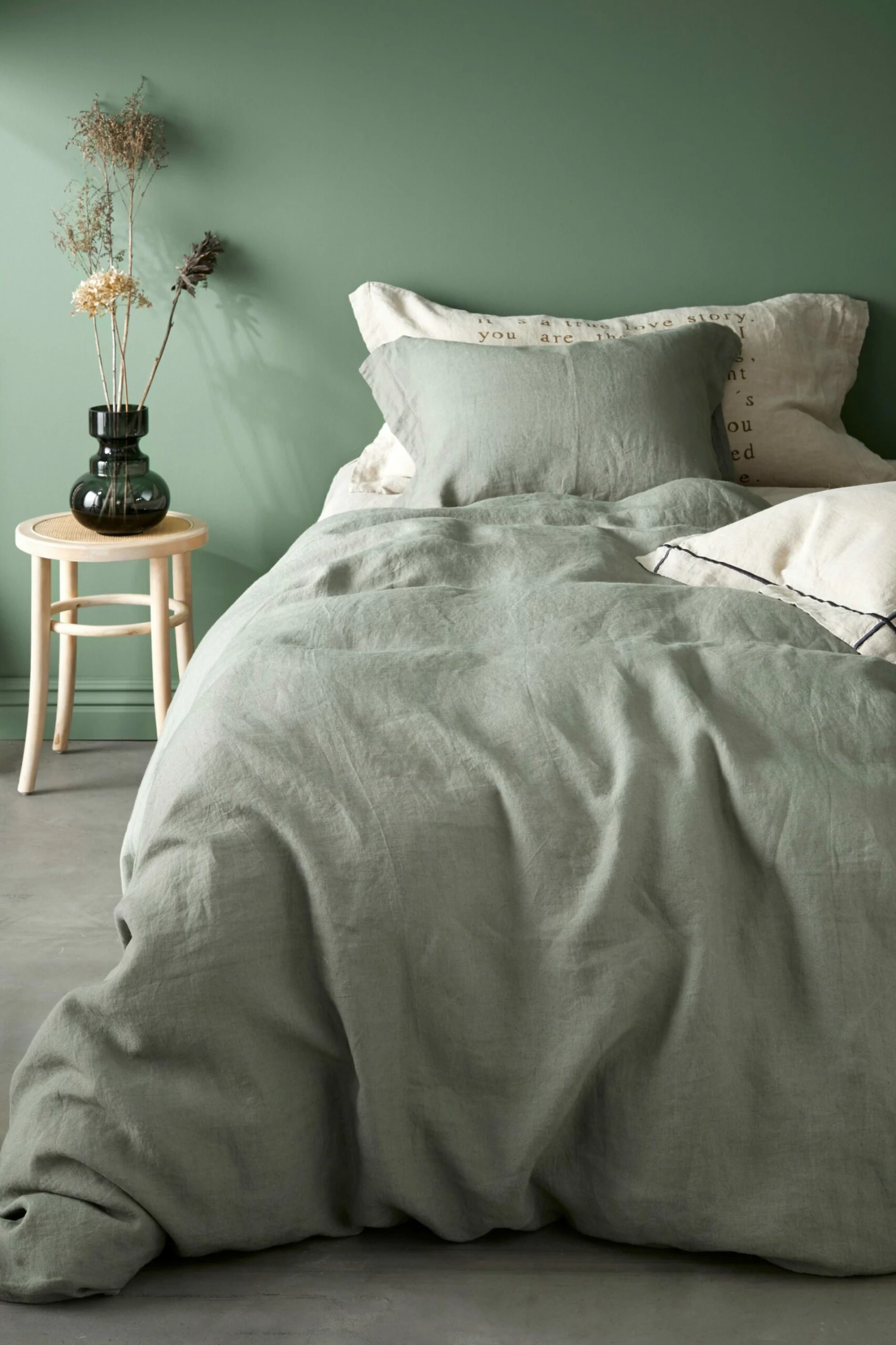 Påslakanset i härlig tvättad linnekvalitet, av franskt lin. Påslakanet har tryckknappar i nederkant. Utan handhål. Örngott med 5 cm vinge på kortsidorna. Vikt 165 g/m2.