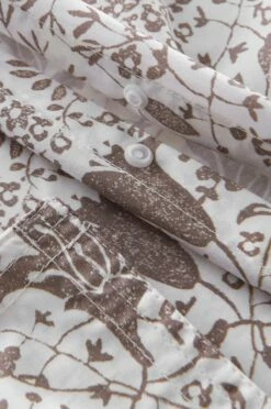 Påslakanset i percale av ekologisk, kammad bomull med tryckt mönster. Bomullen är Easy Care-behandlad, vilket ger en extra sval, slät och krispig känsla och dessutom gör påslakansetet mer lättskött. Tre dekorsömmar runt om på både påslakan och örngott. Trådtäthet 200 TC. Påslakanet har knappar i nederkanten. Setet levereras i en tygbag i samma kvalitet. Bagen kan sedan återanvändas.