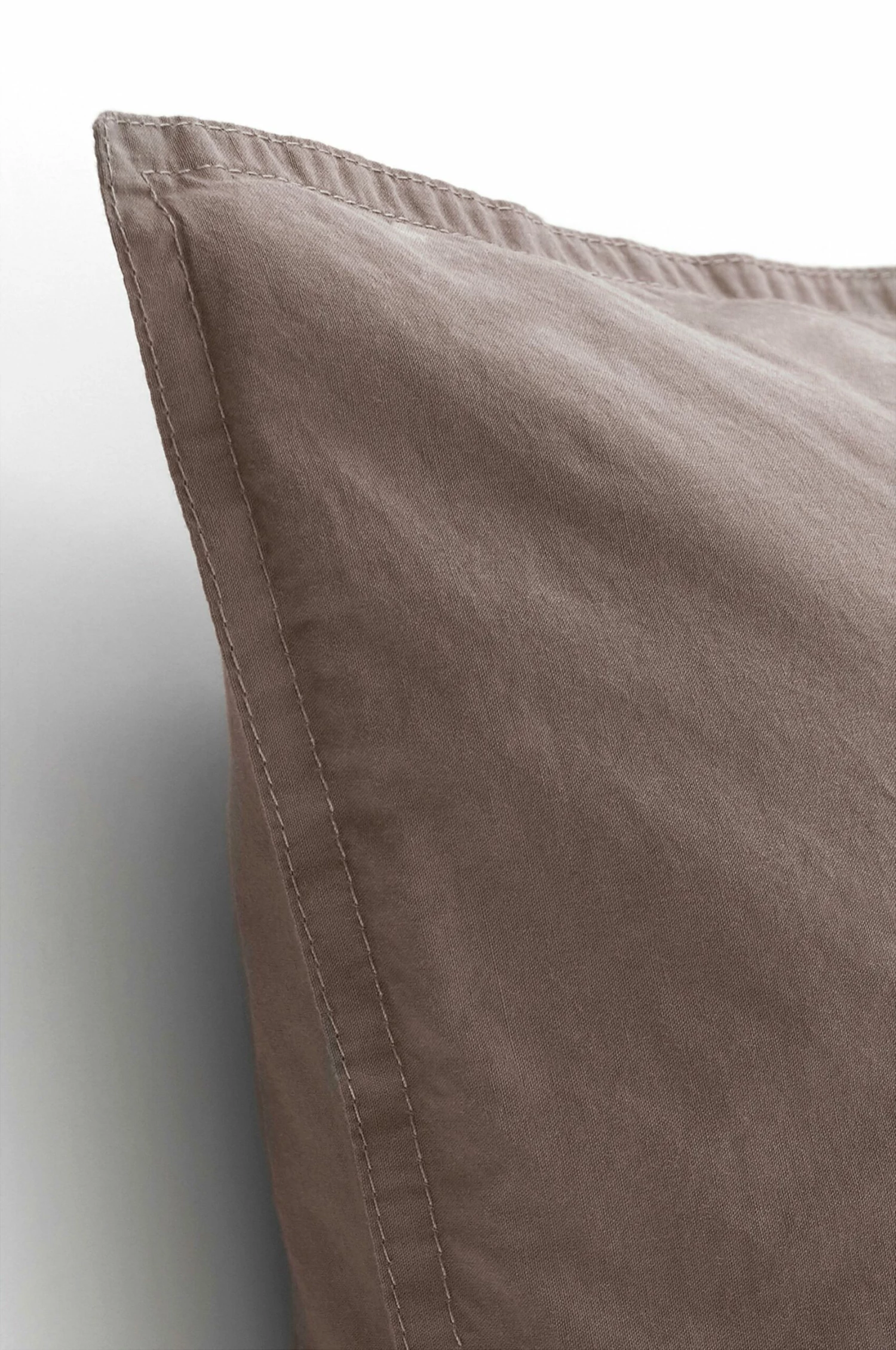 2-eller 3-dels påslakanset i tvättad bomullspercale med dubbla jeanssömmar runt om och tryckknappar i plast i nederkanten på påslakanet. Trådtäthet 200 tc. Inga handhål. Setet levereras packat i en tygbag i samma kvalitet.