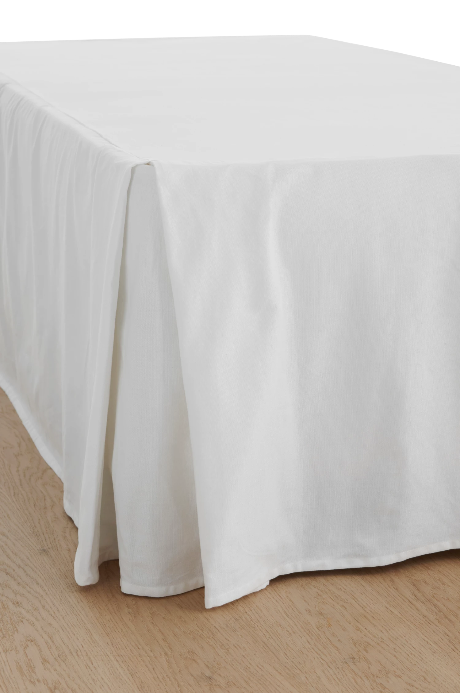 Sängkappa i bomull. Nedhäng i lite kraftigare kvalitet av halvpanama. Slät modell med vikta hörn (invik 15×15 cm). Kappans höjd 52 cm. Levereras i tygbag i samma kvalitet.