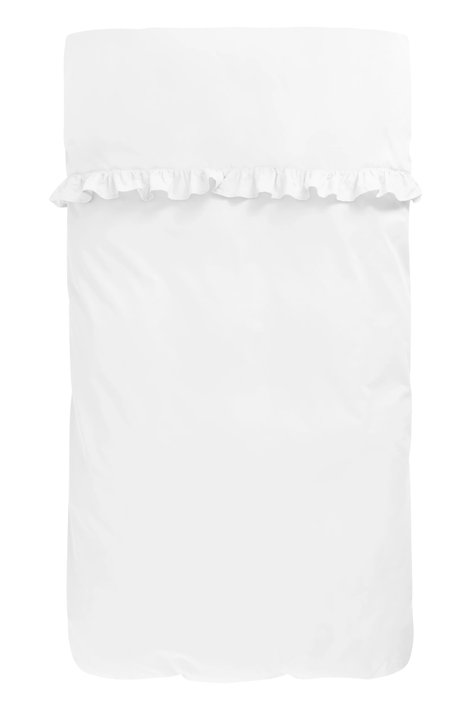 Påslakan av ekologisk bomull med dekorativ volangkant. Att bädda med bomull är luftigt och mjukt mot kroppen. Trådtäthet på 144 tc. (Trådtätheten talar om antalet trådar, thread counts, per kvadrattum i ett tyg. Ju högre trådtäthet desto högre kvalité).