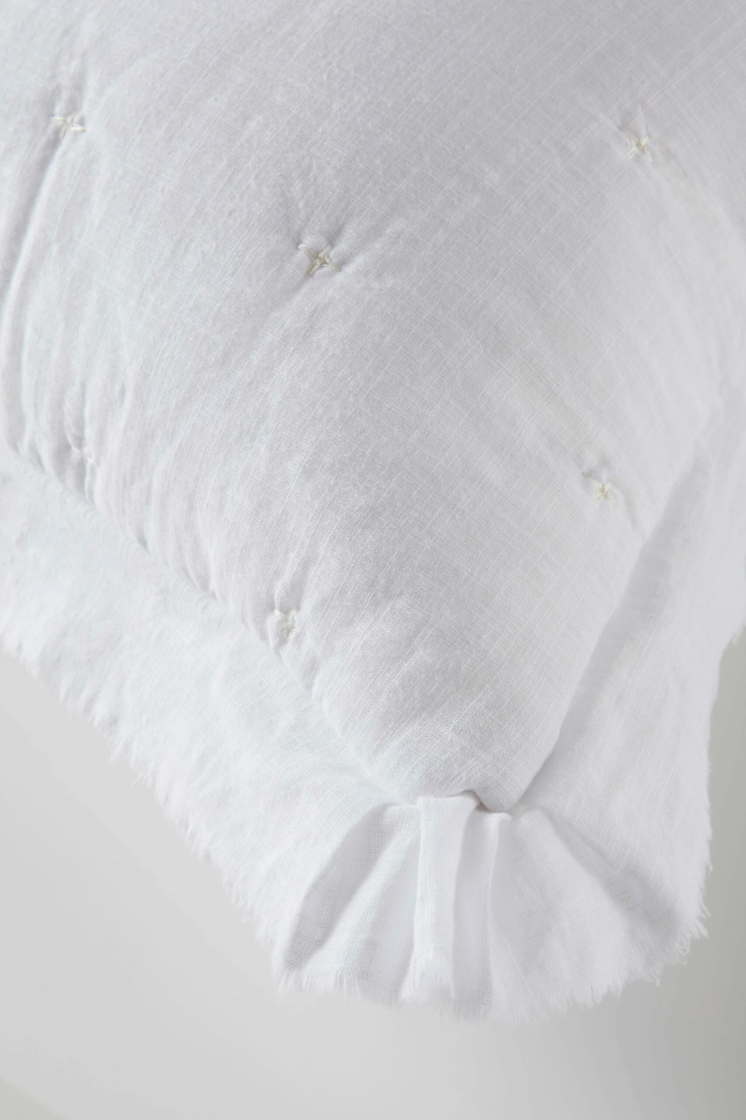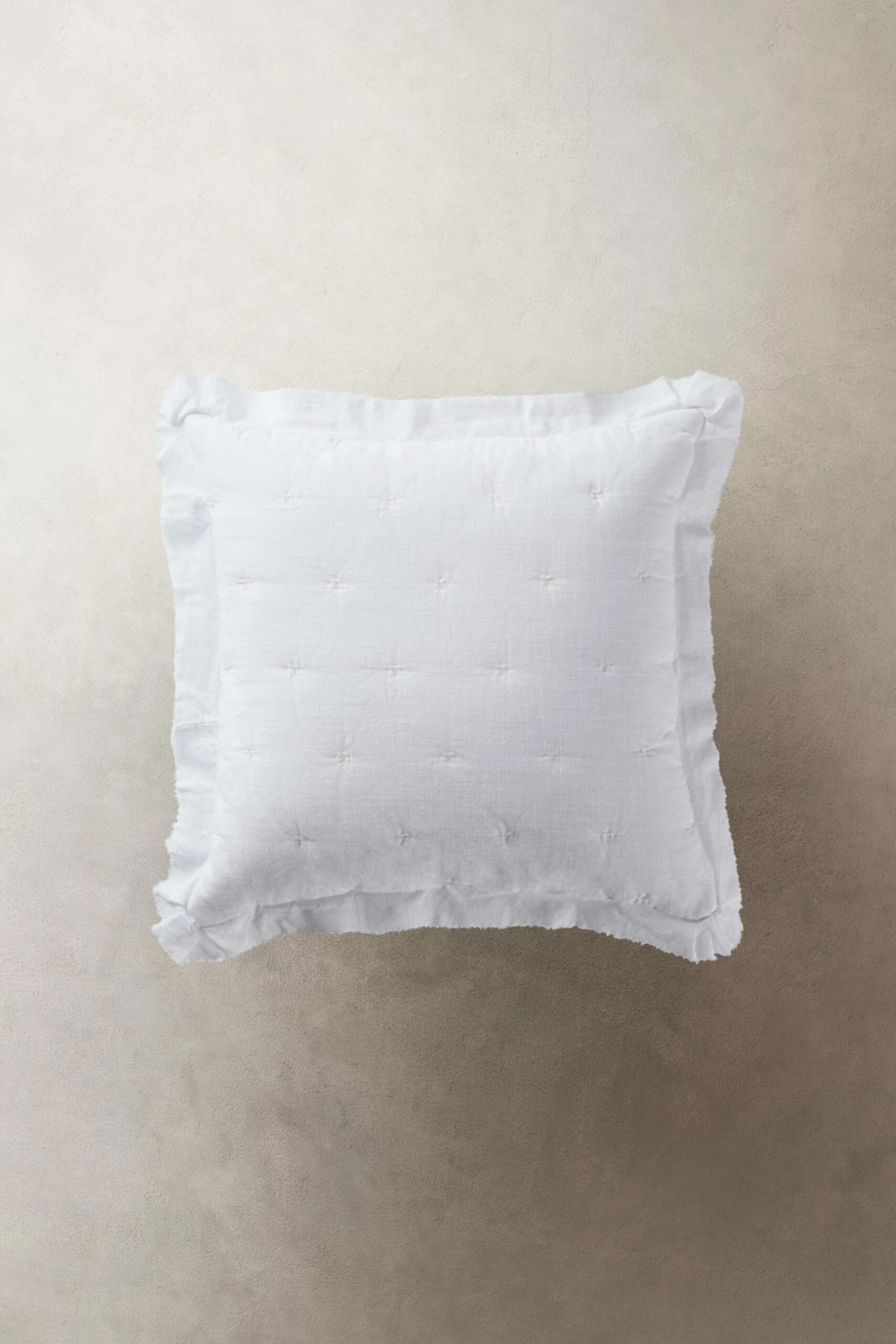 1-pack kuddfodral sytt i mjuk bomullslub som är plaggtvättad vilket innebär att det har tvättas efter sömnad. Slubeffekten ger tyget viss struktur. Tyget är snyggt melerat och lätt vadderat med enkel quiltning av broderade prickar som bildar ett diskret mönster på framsidan. Vinge med rå kant runtom förstärker den mjuka stilen. Kuddfodralets baksida är av bomull. Dragkedja i nederkant.