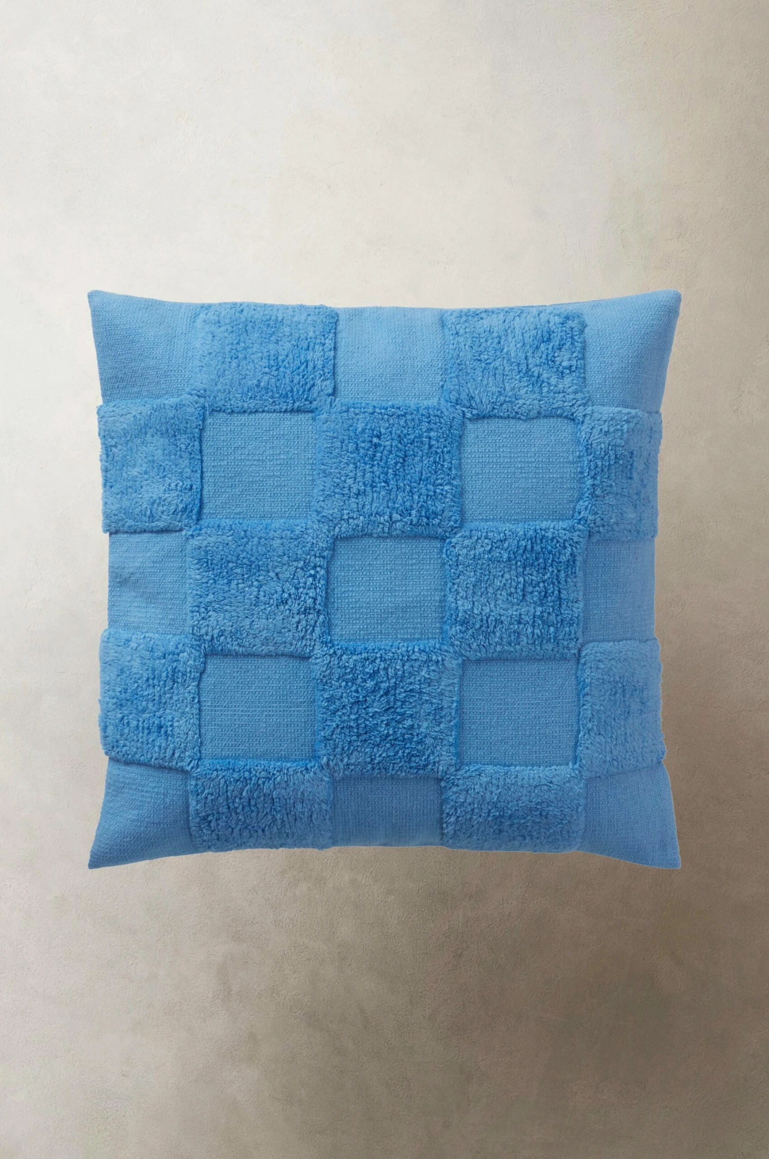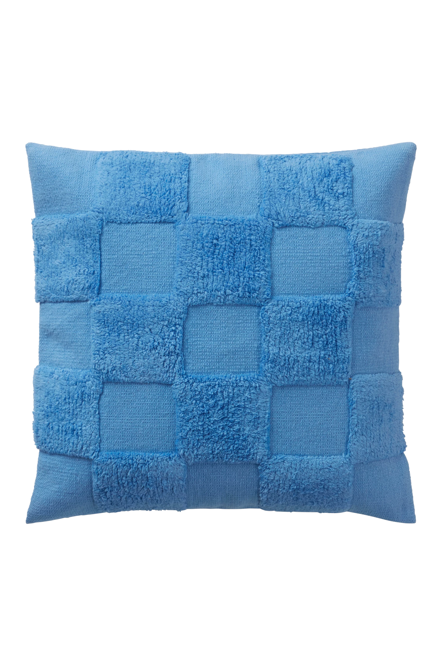 1-pack kuddfodral av bomull med schackrutigt mönster ton-i-ton, där varannan ruta är tuftad och har mjuk lugg. Enfärgad baksida med dold dragkedja.