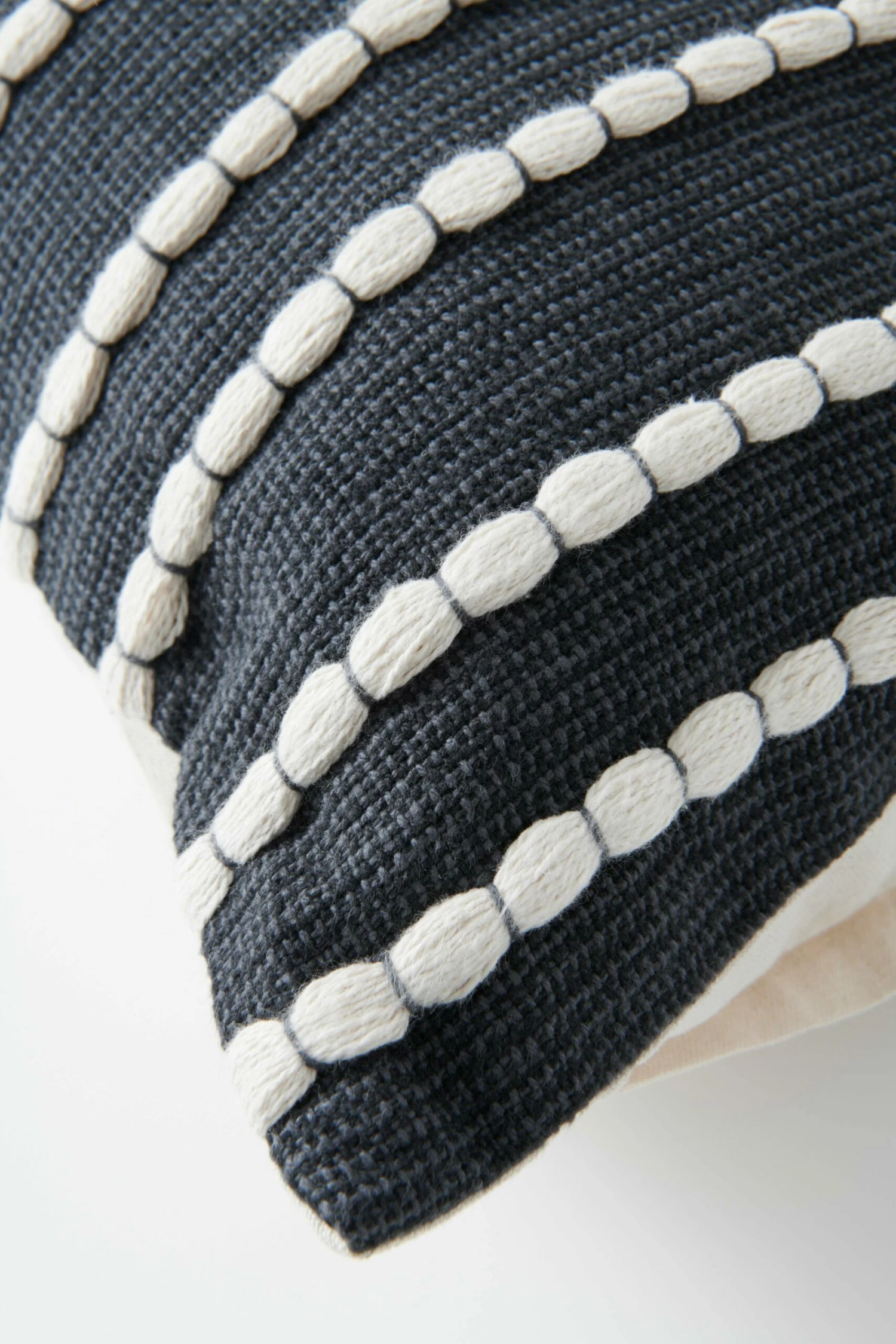 1-pack kuddfodral av handvävd bomull med strukturränder. Dragkedja i nederkant.