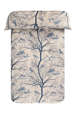 Påslakan i ekologisk bomull med tryckt mönster. Tyget är enzymtvättat vilket ger en skön, lite sliten känsla. Öppning i övre hörnen på påslakanet, som underlättar att trä påslakanet över täcket. Trådtäthet på 144 tc. (Trådtätheten talar om antalet trådar, thread counts, per kvadrattum i ett tyg. Ju högre trådtäthet desto högre kvalité).