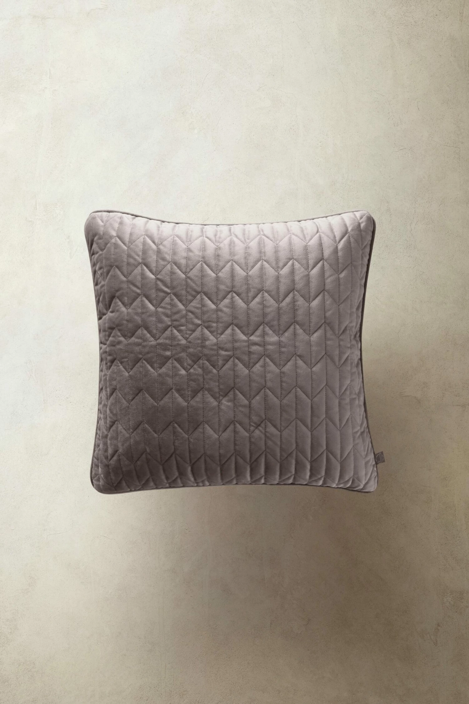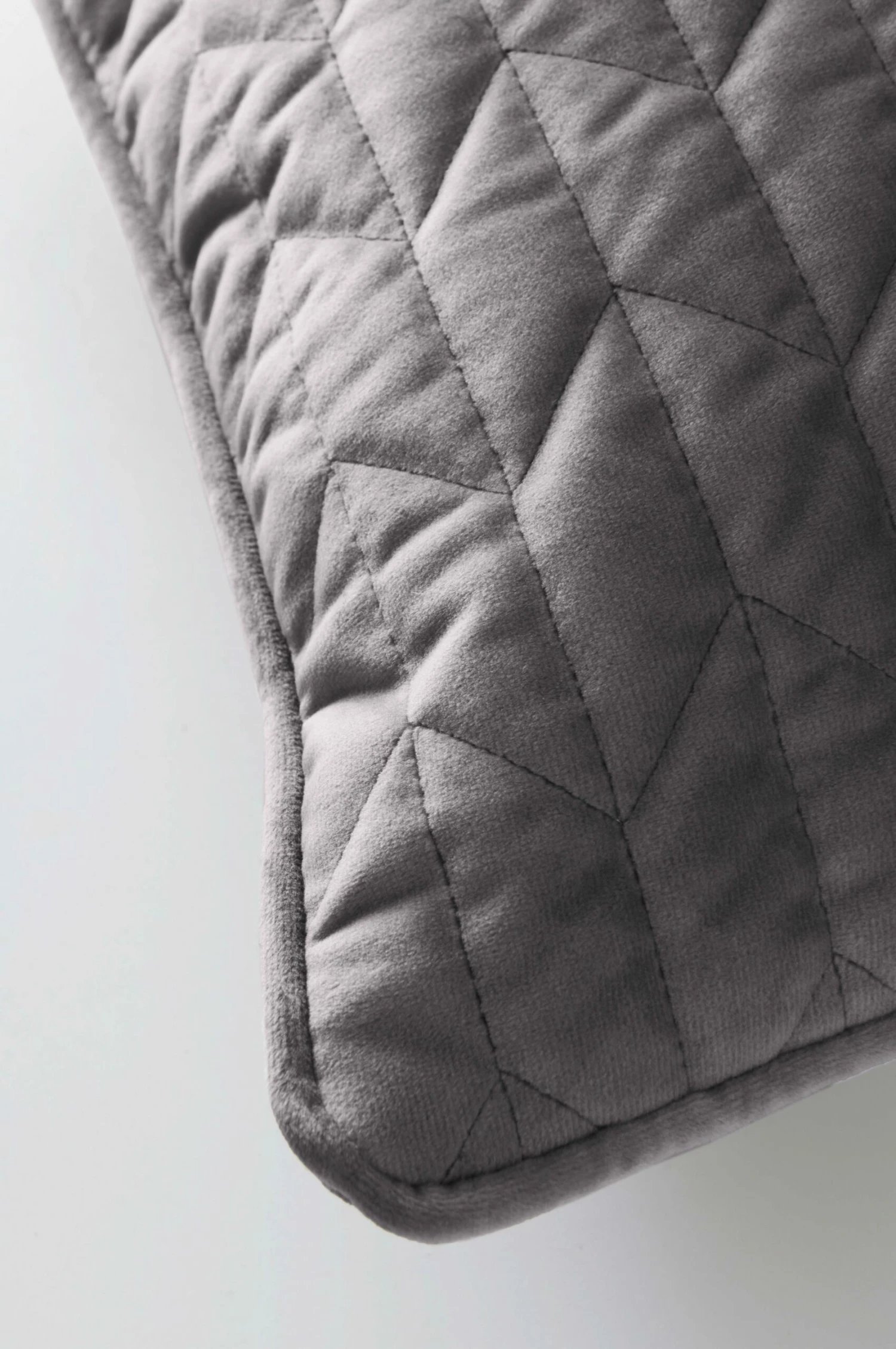Kuddfodral med quiltad ovansida i sammet och piping runt om och blixtlås i nederkant.