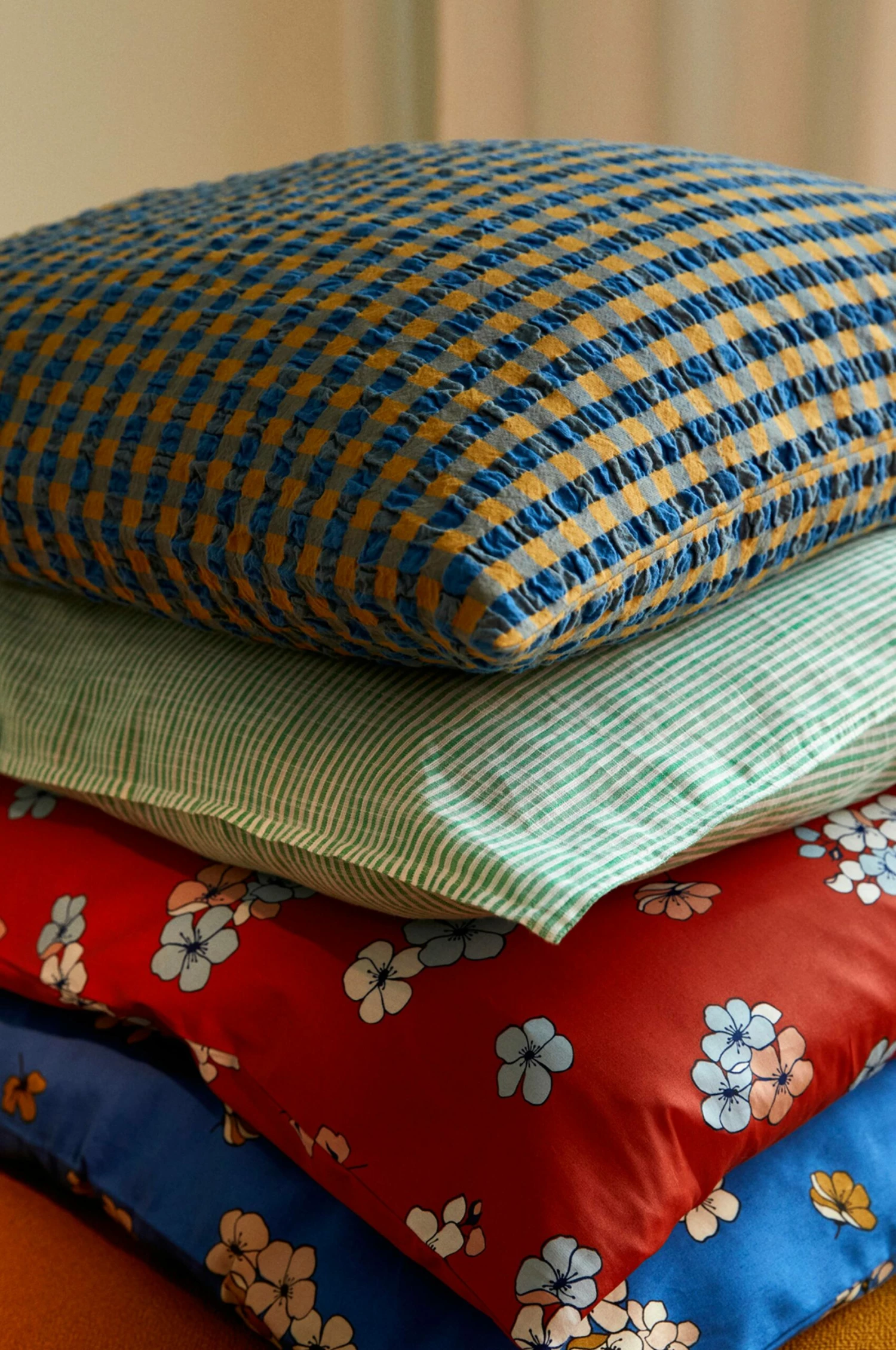 Det nya, rutiga bäddsetet från Bæk&Bølge har en varm, dämpad friskhet och samtidigt ett djup och ett lugn som påminner om en promenad i skogen eller på stranden en vacker höstdag. Det är gjord av 100 % ekologisk bomull, som är både OEKO-TEX®-märkt och GOTS-certifierad samt strykfri. Örngottet har kuvertstängning, medan påslakanet har knappar. Om du har flera olika JUNA-bäddset kan du mixa och matcha de olika färgerna och mönstren för att skapa din alldeles egna sovrumsstil.
