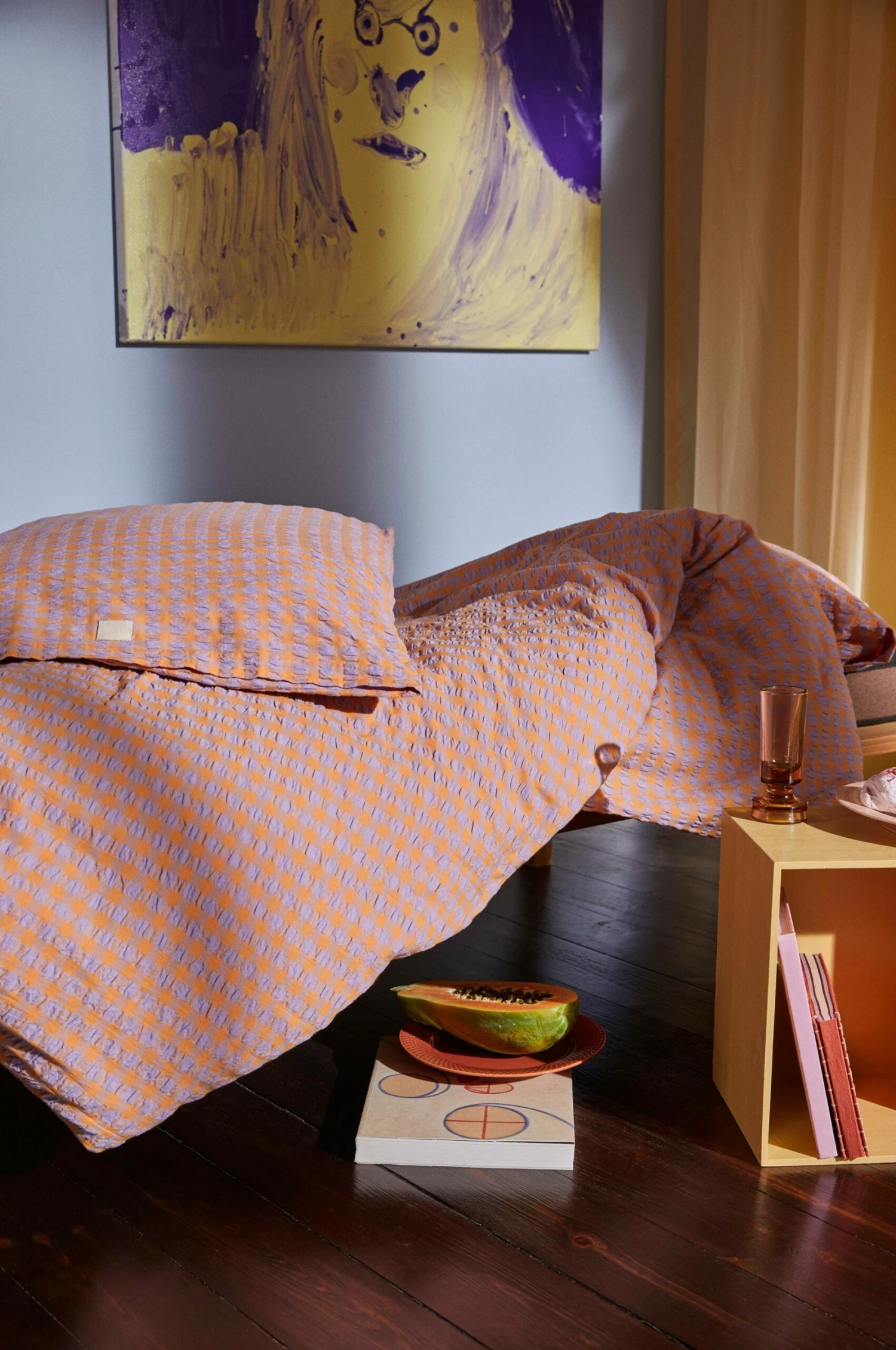 Det nya, rutiga bäddsetet från Bæk&Bølge har en varm, dämpad friskhet, medan det ockrafärgade ger ett djup och ett lugn som påminner om en promenad i skogen eller på stranden en vacker höstdag. Det är gjord av 100 % ekologisk bomull, som är både OEKO-TEX®-märkt och GOTS-certifierad samt strykfri. Örngottet har kuvertstängning, medan påslakanet har knappar. Om du har flera olika JUNA-bäddset kan du mixa och matcha de olika färgerna och mönstren för att skapa din alldeles egna sovrumsstil.