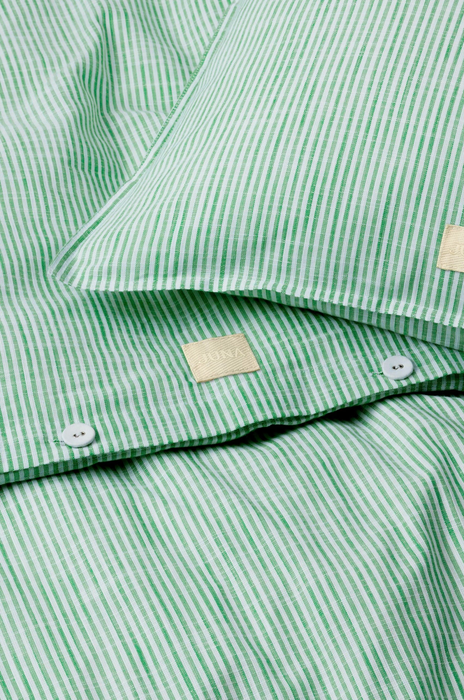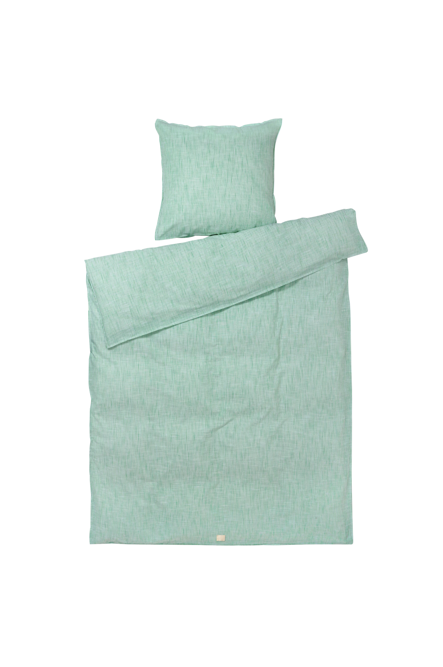 Monochrome-serien är gjord av 100 % ekologisk bomull och vävd för att ge tyget en rå, avslappnad look inspirerad av naturens strukturer, med en mycket speciell yta som känns himmelsk mot huden. Den speciella väven med sin ojämna tråd skapar unika variationer i tygets struktur och väcker färgen till liv. I kombination med vita ränder ger den dämpade färgen Monochrome Lines en klassisk look, som passar fint till kuddar, filtar och sängkläder från de andra JUNA-serierna, så att du kan mixa och matcha fritt. Monochrome Lines är inte bara ett vackert tillskott till sovrummet utan ger dig en mjuk, god natts sömn. Bäddsetet är även GOTS-certifierat och OEKO-TEX®-märkt, så att du kan sova lugnt och drömma hela natten.