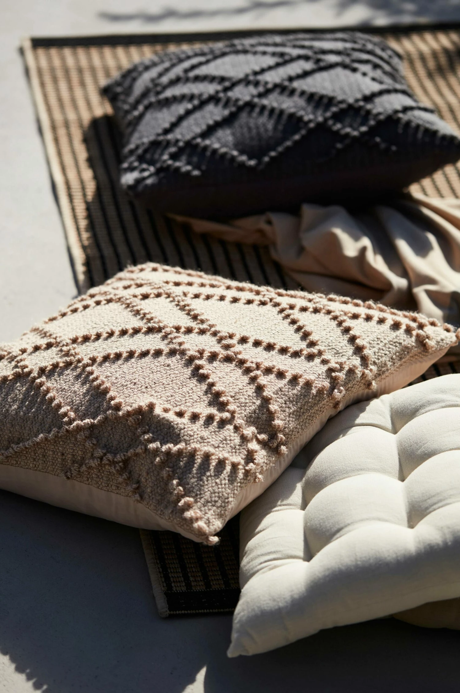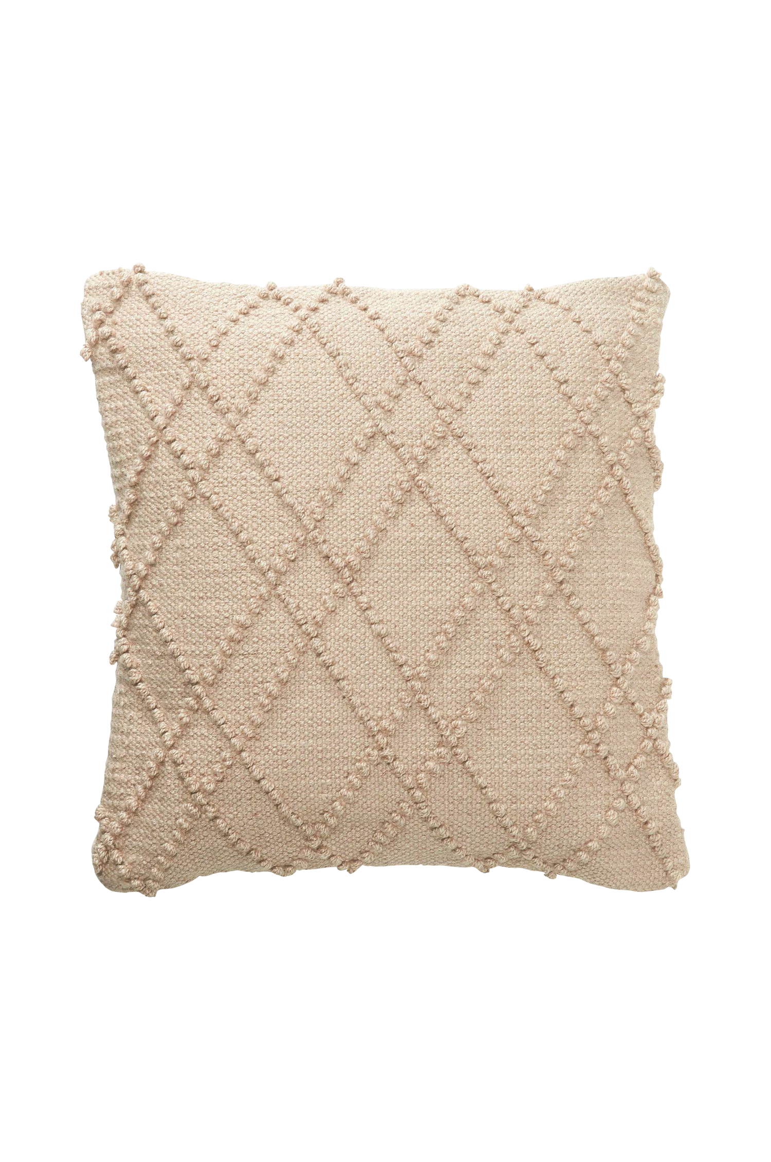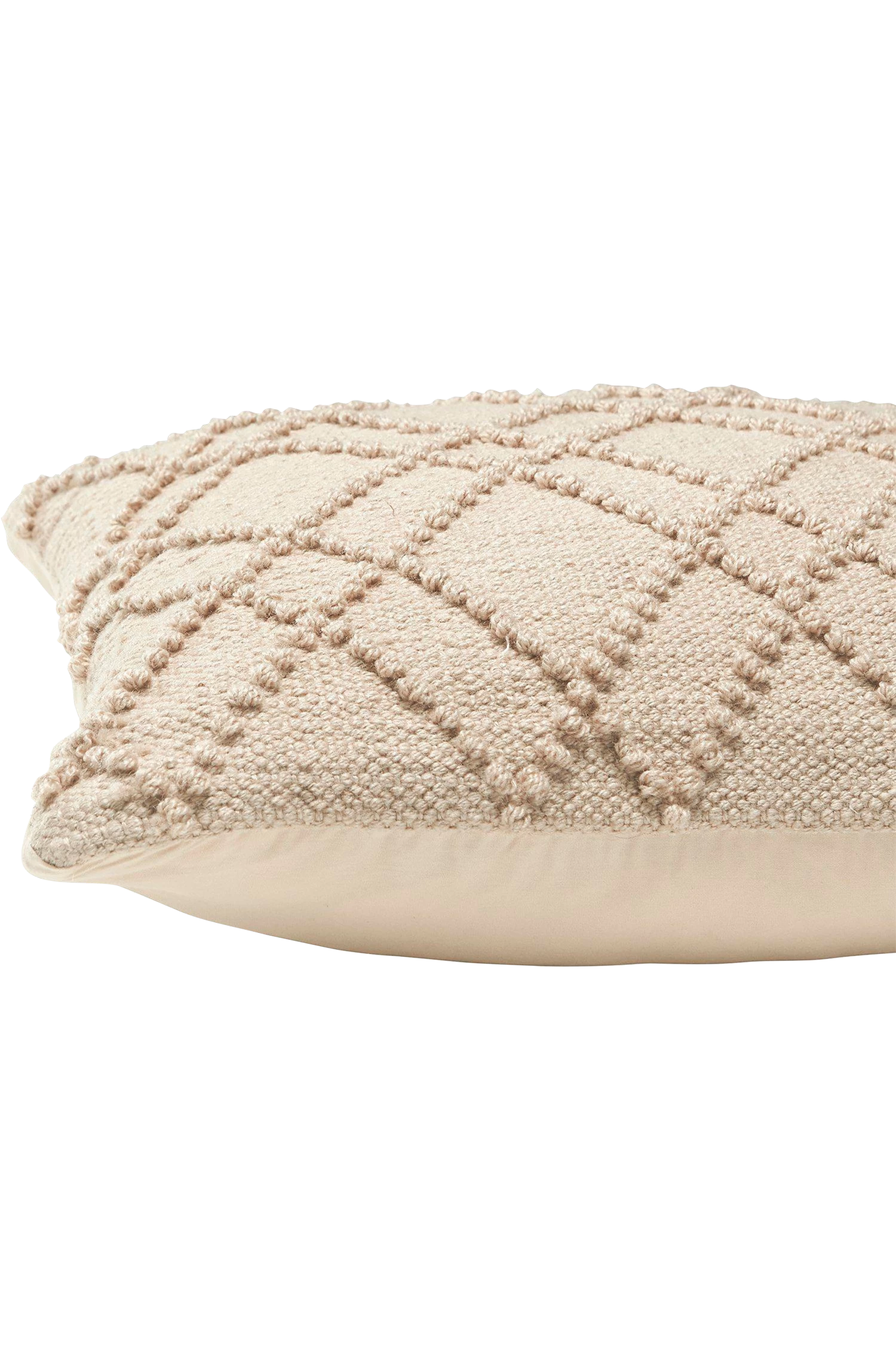 Kuddfodral av återvunnen PET med diskret mönster som går ton i ton med baksidan av bomull. Kuddfodralet är mjukt och även framsidan har en känsla av bomull men är tillverkad av återvunna PET flaskor. Kan användas både inomhus och utomhus. Används kuddfodralet ute, tänk på att skydda det för regn. Innerkudde köpes separat, För ett välfyllt utseende köp gärna en innerkudde som är något större, ca 60×60 cm. Mått 50×50 cm. 50% Polyester 50% Bomull.