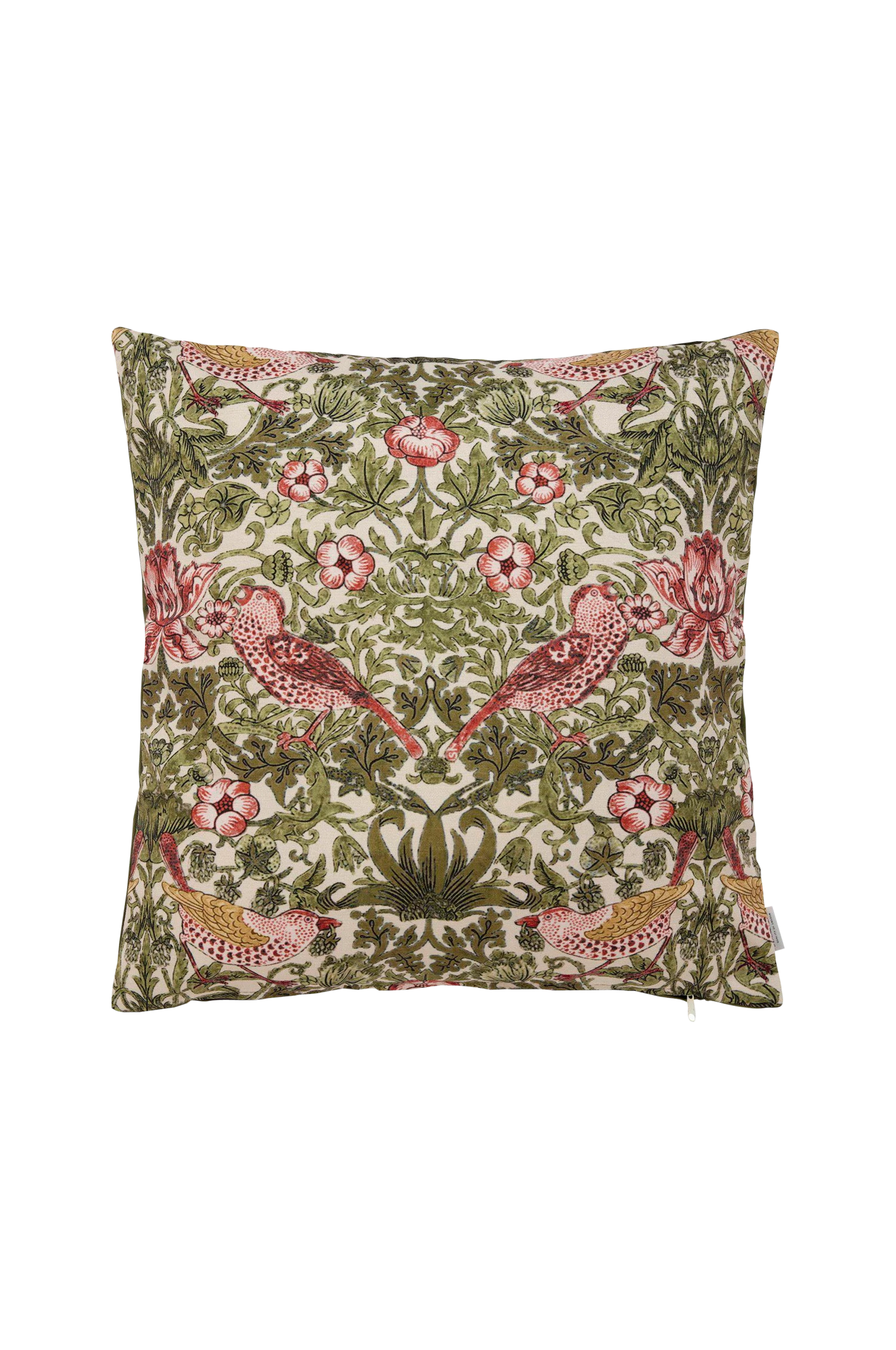 Vilja, kuddfodral med vackert mönster av blommor, blad och fåglar. Innerkudde köpes separat. För ett välfyllt utseende köp gärna en innerkudde som är något större. Kuddfodralet har en dragkedja i nederkant. 100% Polyester.