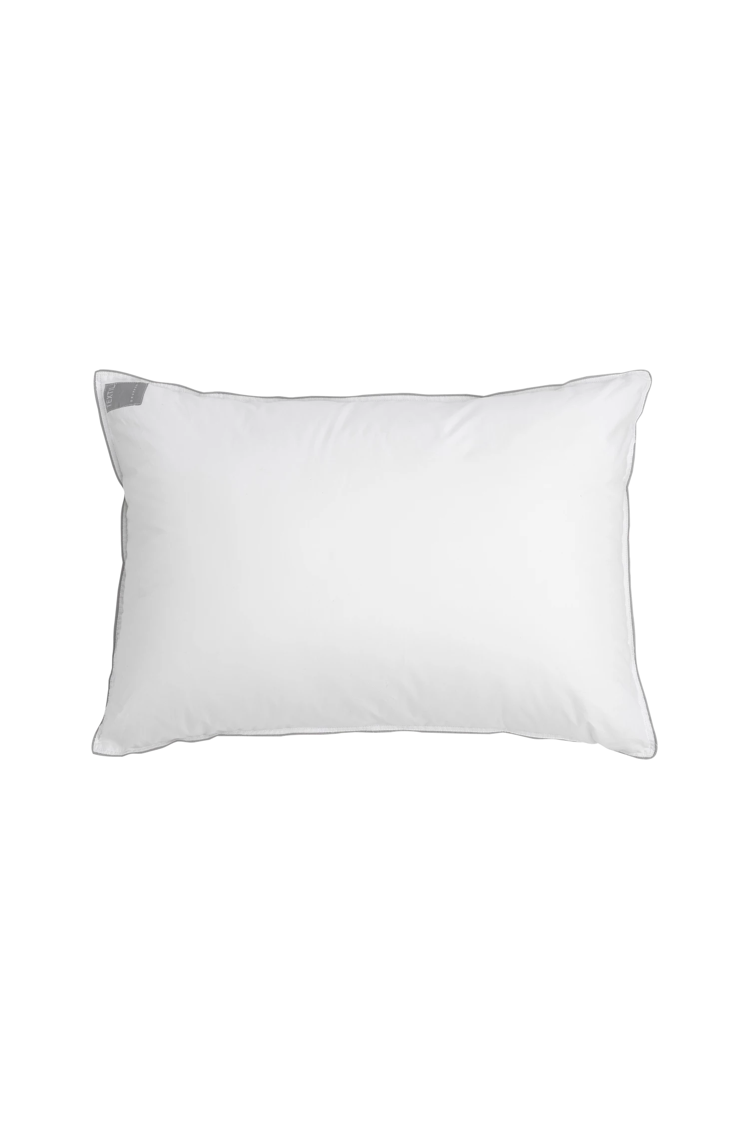 Textilgruppen kudde i slitstark bomullscambric med grå passpoal runt om. Kudden är extra lång och har en fyllning av 760 gram hålfiber som ger den rätta hotellkänslan. Kudden finns i flera olika mått.OEKO-TEX. Yttertyg 100% Bomull, Fyllning 100% hålfiber